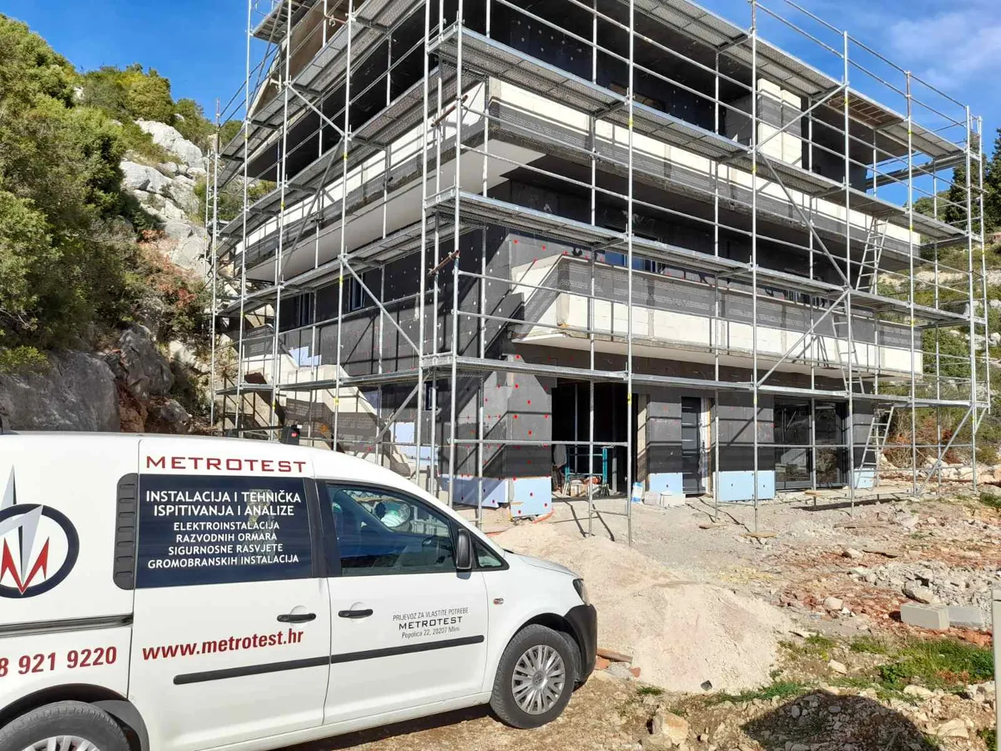 Grube električne instalacije izvode se na temelju plana električnih instalacija koji se mora pripremiti prije početka građevinskih radova. Grube električne instalacije uključuju: pripremu proboja, izradu žljebova za električne kabele i ugradnju električnih instalacija – polaganje kabela, ugradnju razvodnih kutija i ugradnju električnih razvodnih ormarića. Fine električne instalacije uključuju ugradnju prekidača i utičnica.