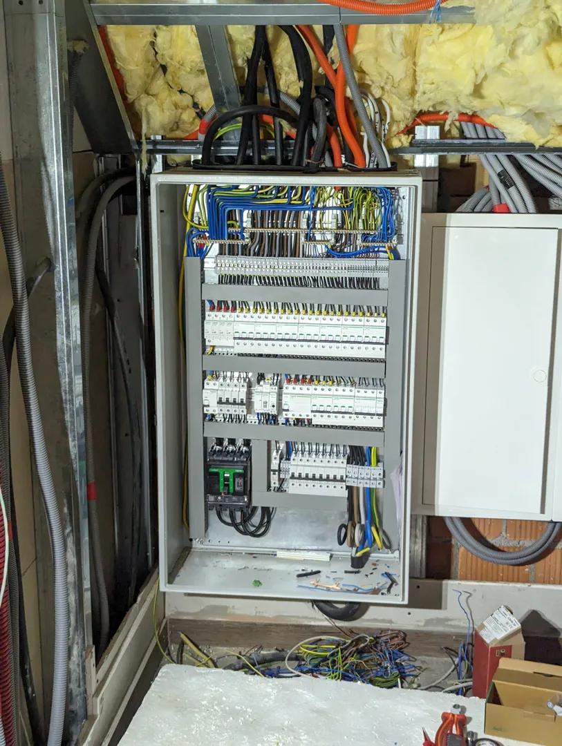 Grube električne instalacije izvode se na temelju plana električnih instalacija koji se mora pripremiti prije početka građevinskih radova. Grube električne instalacije uključuju: pripremu proboja, izradu žljebova za električne kabele i ugradnju električnih instalacija – polaganje kabela, ugradnju razvodnih kutija i ugradnju električnih razvodnih ormarića. Fine električne instalacije uključuju ugradnju prekidača i utičnica.