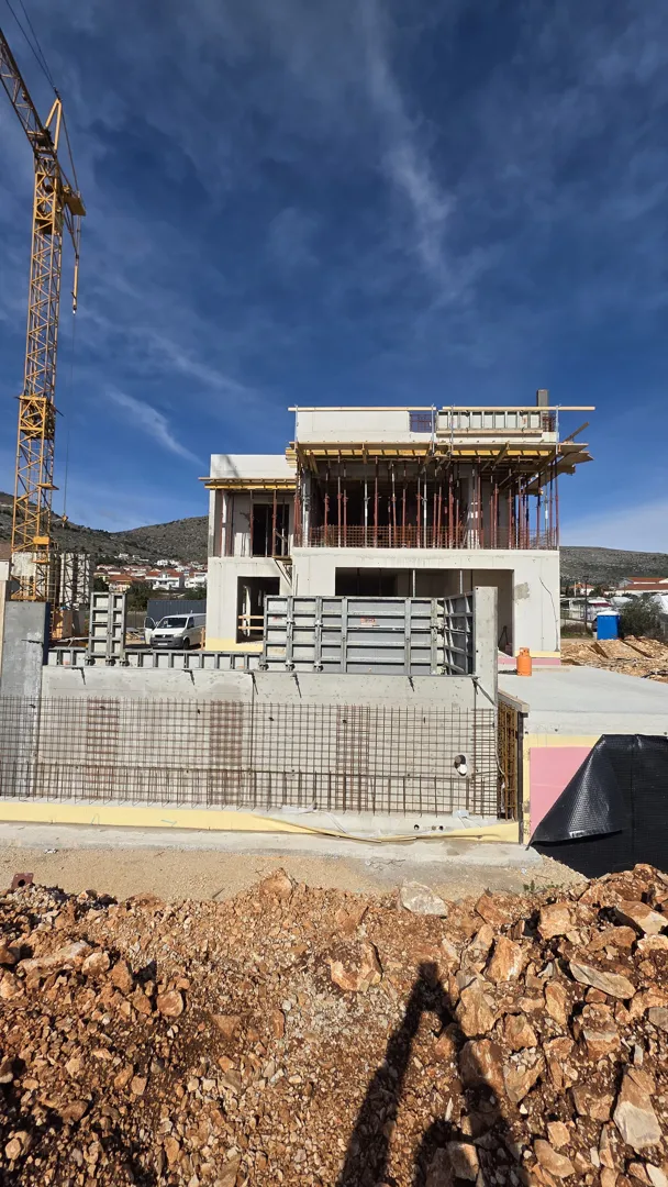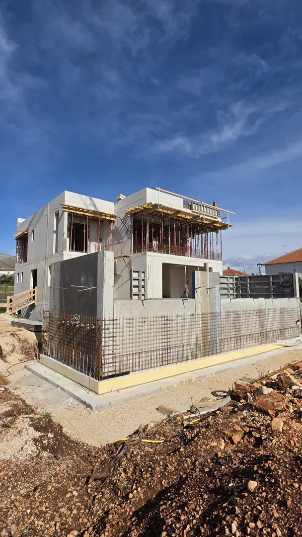Poštovani, radi se o gradnji pomoćne prizemne građevine i izgradnjom prvog kata. Pomoćna prizemna građevina se gradi sa običnom opekom, dok prvi kat zahtjeva znanje rada sa porotherm Wienerberger opekom. Građevinska dozvola je u rješavanju. Glavni projekt arhitekta je dostupan. Čestica se nalazi na Trogir Mastrinka, poznavanje kraja je od prednosti. Gradnja dugog kata kuće trenutno nije potrebna i ovisi o vašoj ponudi i mogućnosti.