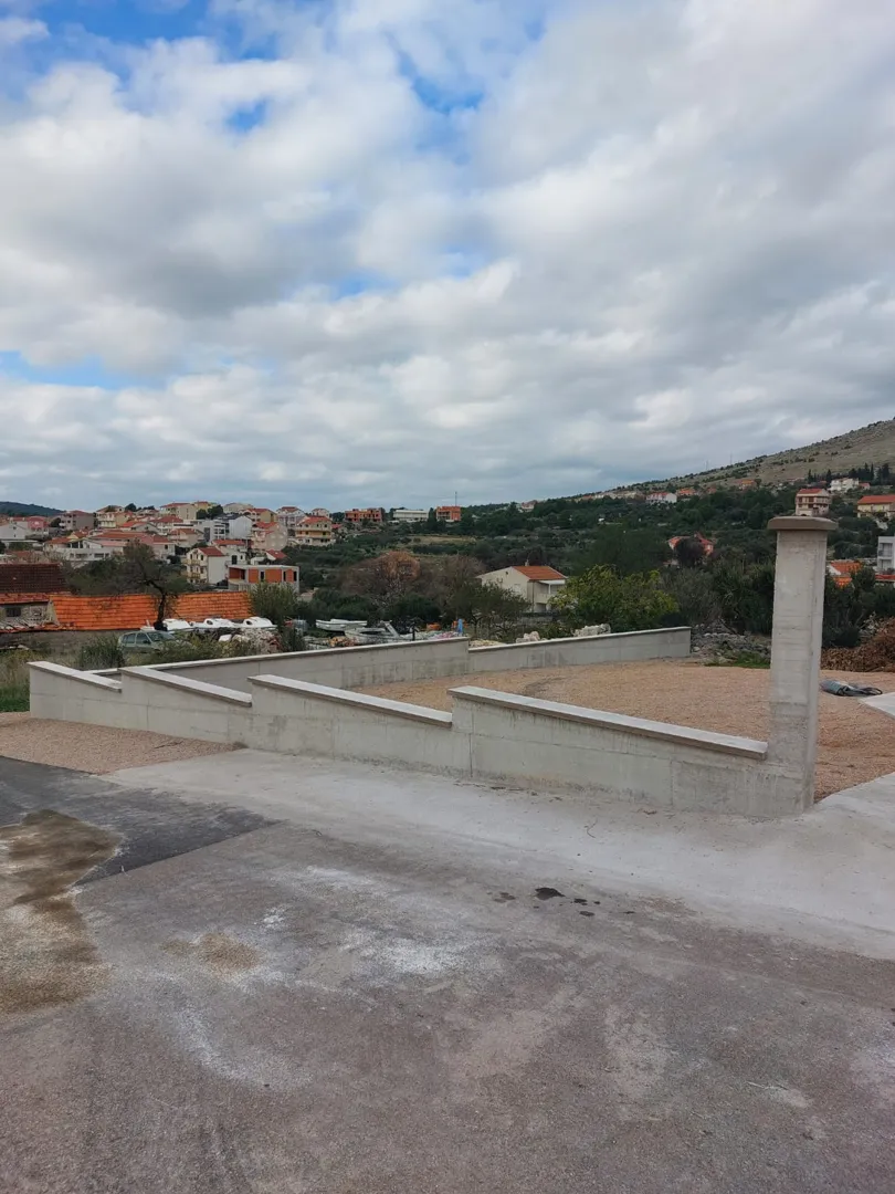 Obiteljska kuca sa tri kata ravni krov svaki kat po jedan trosobni stan sa bazenom dimenzija 6 puta3 m.i betonskom ogradom od 80 Duzni metara i visine 1,3 m
