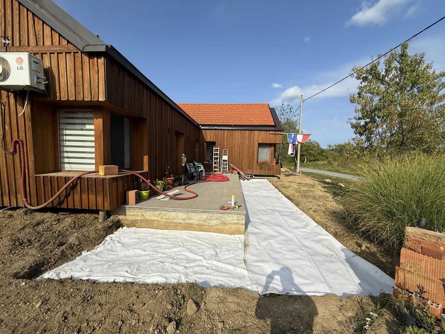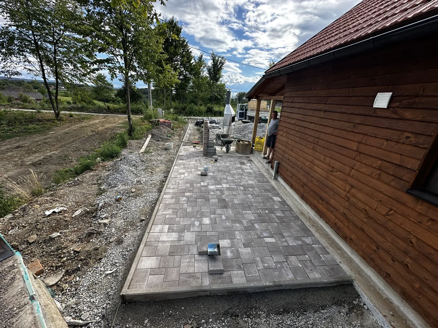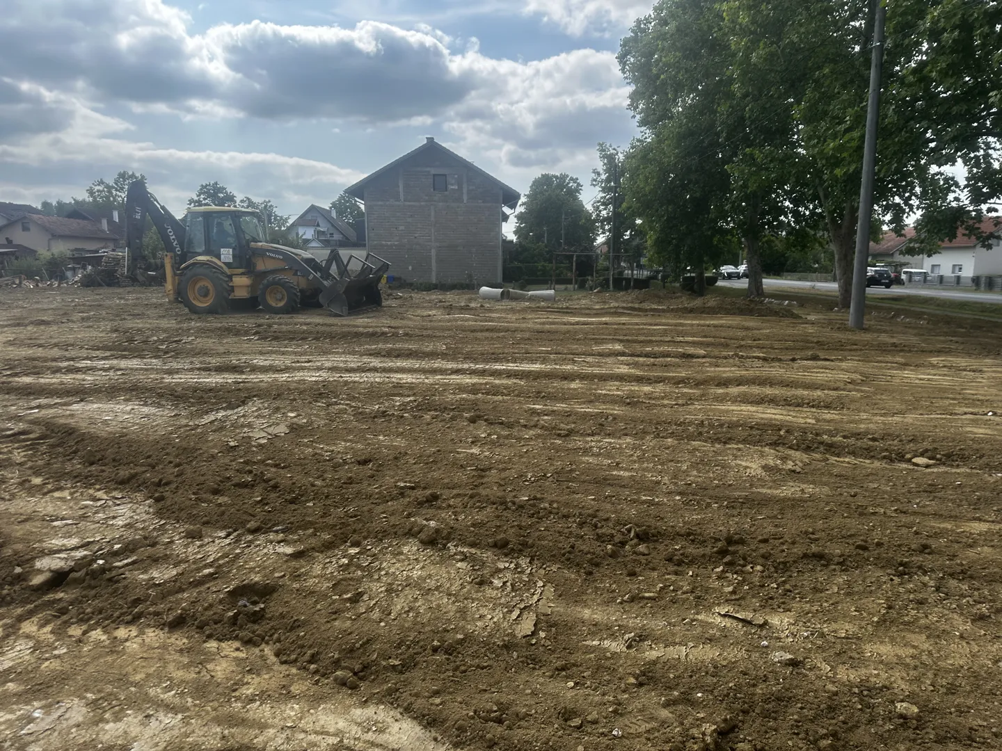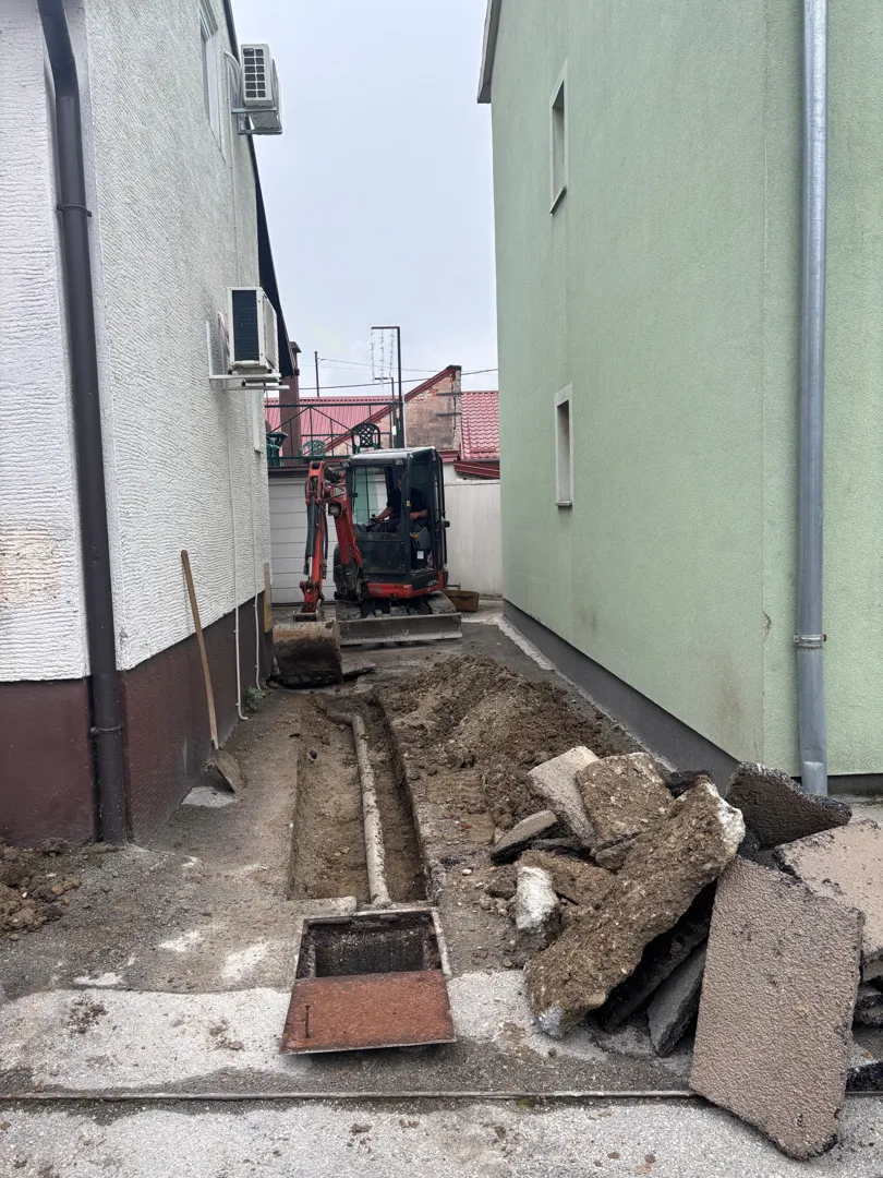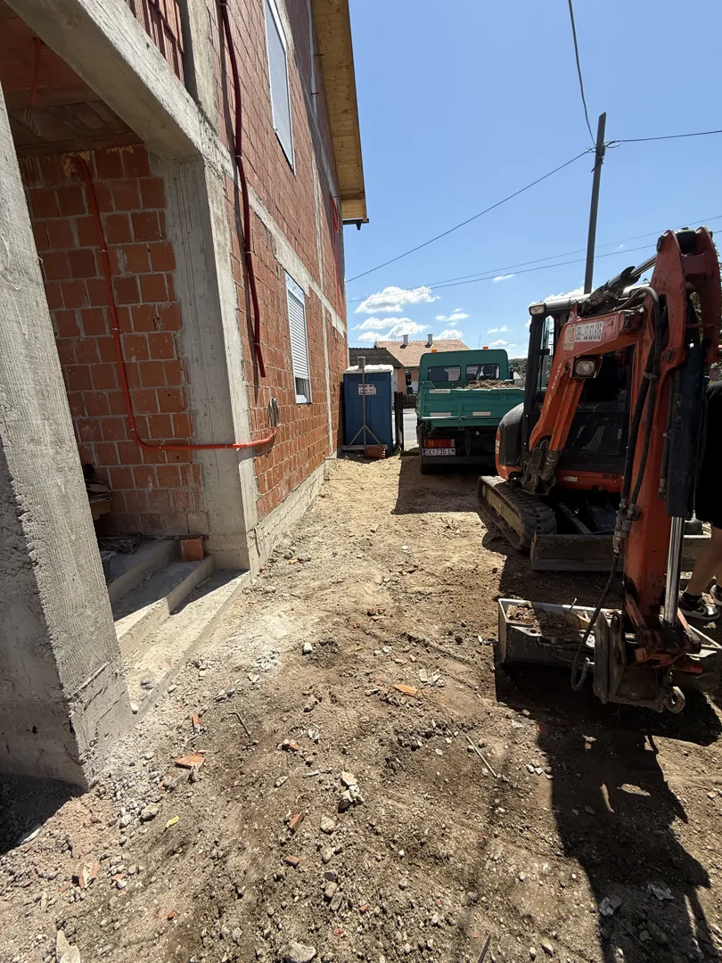 Iskop oko kvadrata ulaz u dvorište. Dubina 40cm, nasipavanje 0-60mm i površinski 0-30. Zemlja se ne odvozi vec poravna odmah na gradilištu.