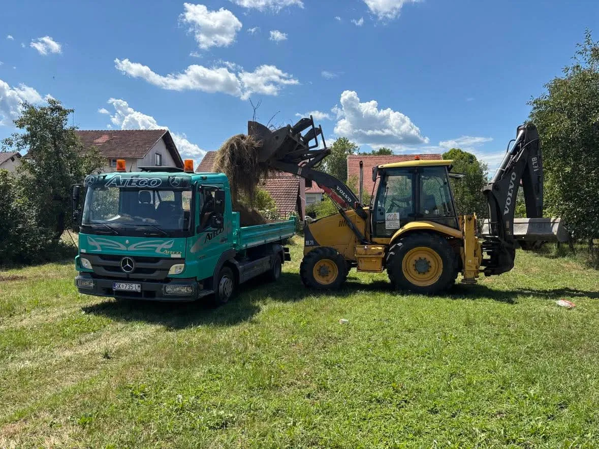 Iskop zemlje i postavljanje geotekstila, dva prelaza preko kanala sa cijevima fi 40cm duzina ukupno 10metara. Navlačenje kamena i pijeska debljine 30cm na površini od - kvadrata. Čupanje panjeva oko 10 komada, rušenje betona od ograde i rušenje nekih ,malih starih prostorija.