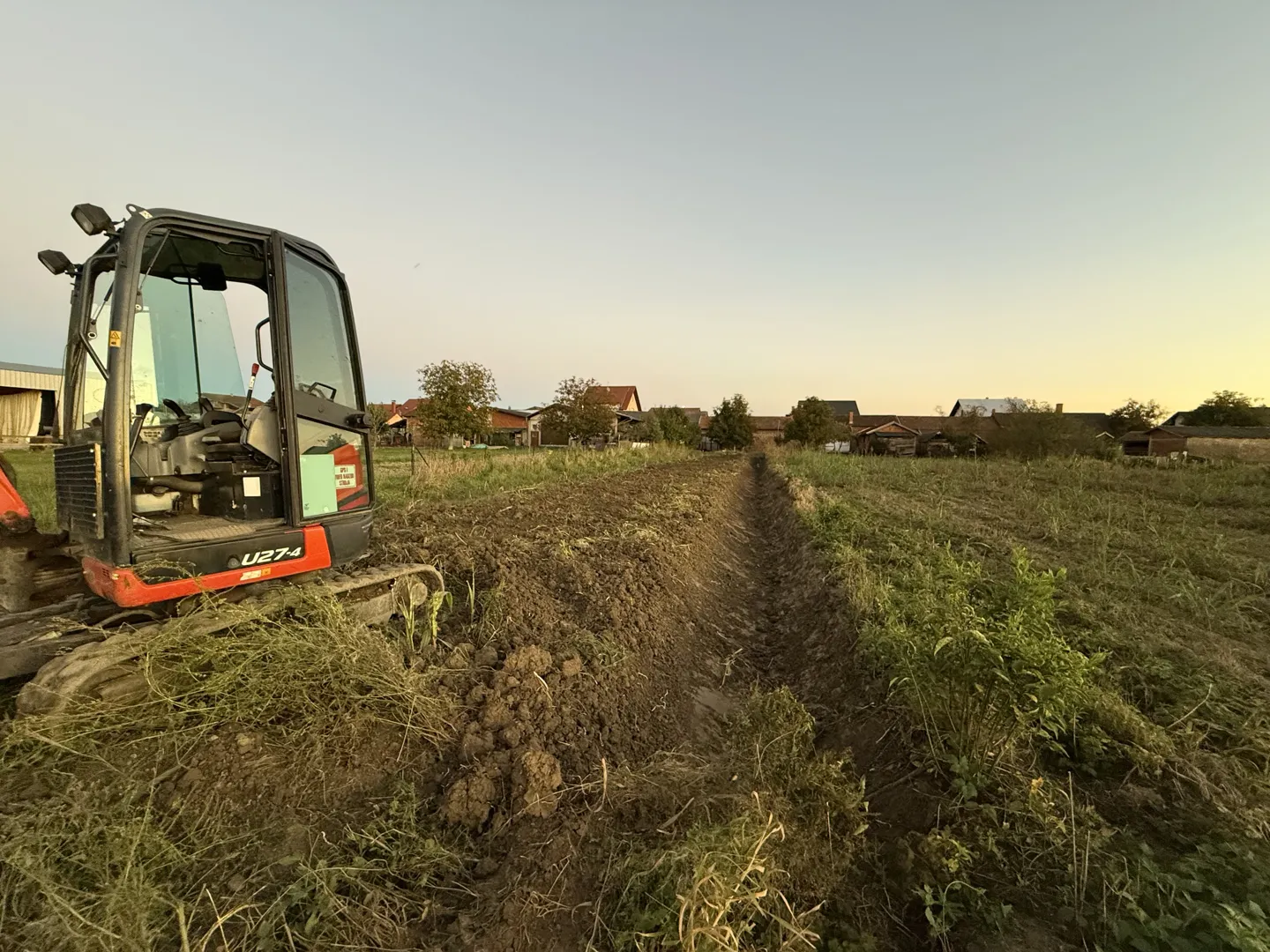 Iskop temelja za ogradu bagerom sirine 30 cm korpom, duzine oko 20 metara