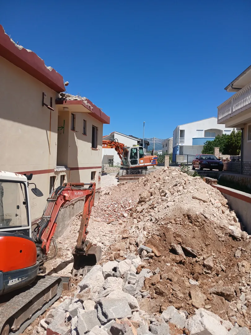 Potreban iskop za odvodnju od kuće do šahta, dužine nekih 30m u Arbanasima. Treba napraviti spoj sa šahtom na cesti, potrebno ponovno asfaltirati, udaljenost oko 1,5m od granice parcele. Zbog uskog prilaza potreban mini bager i pristup je moguć manjim kamionom. Pored toga, potrebno iskopati oko 2x4m zemlju dubine oko 40cm za temelj stepeništa i odvući šutu.