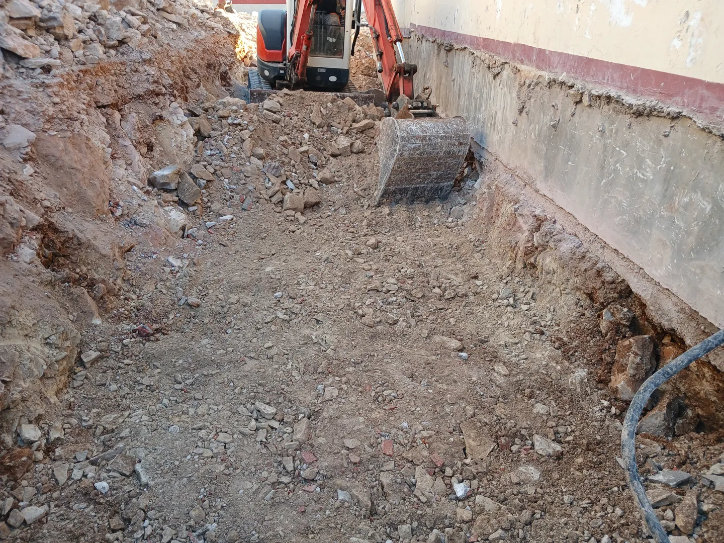 Ručno čišćenje rova oko kuće zbog postavljanja hidroizolacije podruma. Rov je iskopan ali je djelimično zatrpan građevinskim ostacima. Po mogućnosti 2 pomoćna radnika