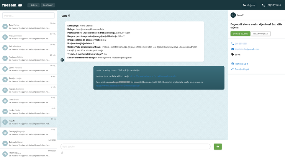 U međuvremenu mi obavijestimo klijenta koji je predao upit te vas najavimo. Tako klijent očekuje vaš poziv te je upoznat s vašim javnim profilom, ocjenama i komentarima vaših prethodnih klijenata.