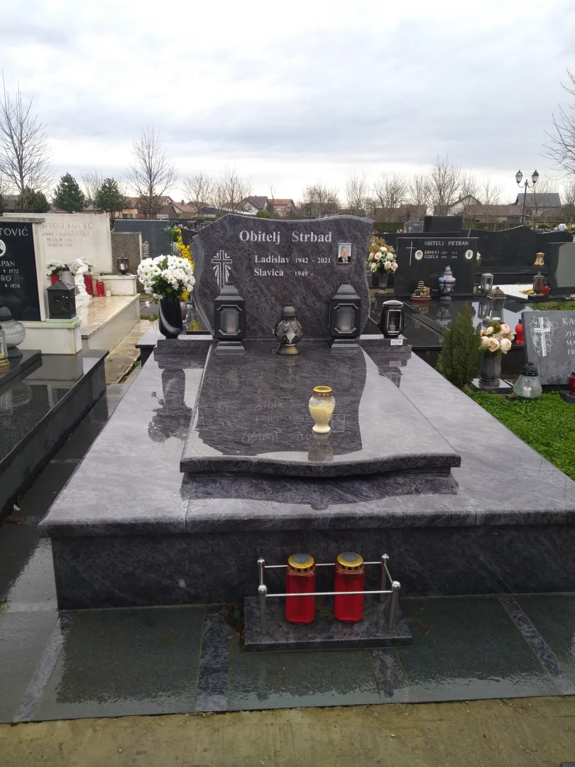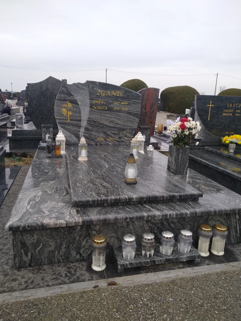 Grobno mjesto za 2 osobe/sadašnji okvir 2*2/.Kombinacija tamni i svijetli granit, moguće mat. Ne standardna izvedba.