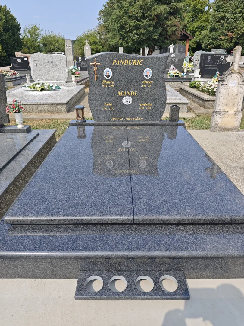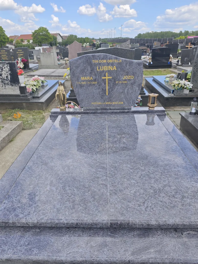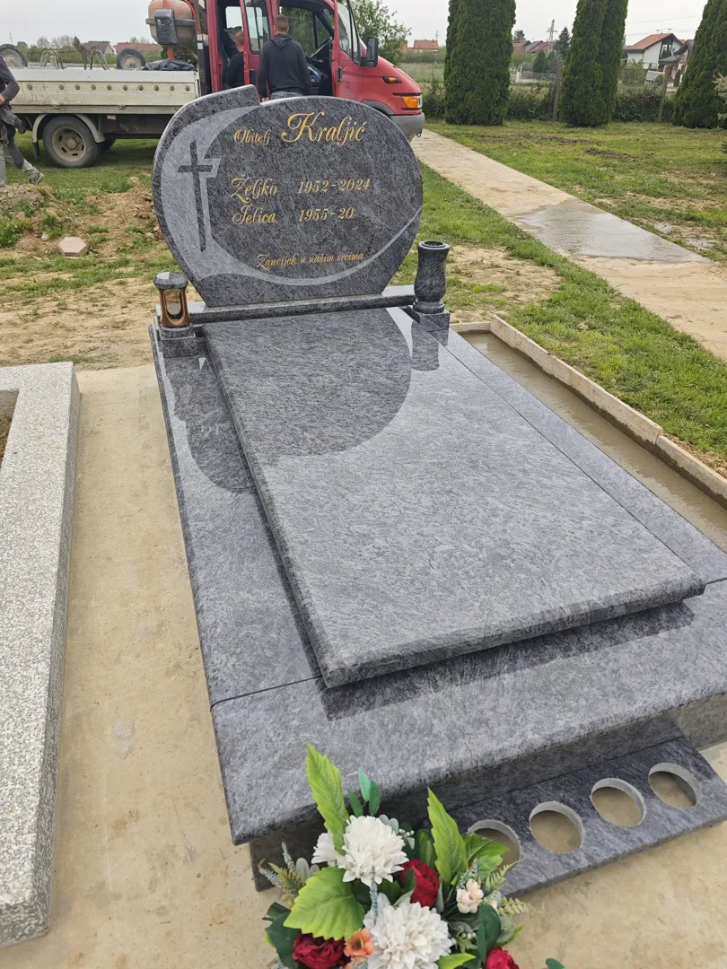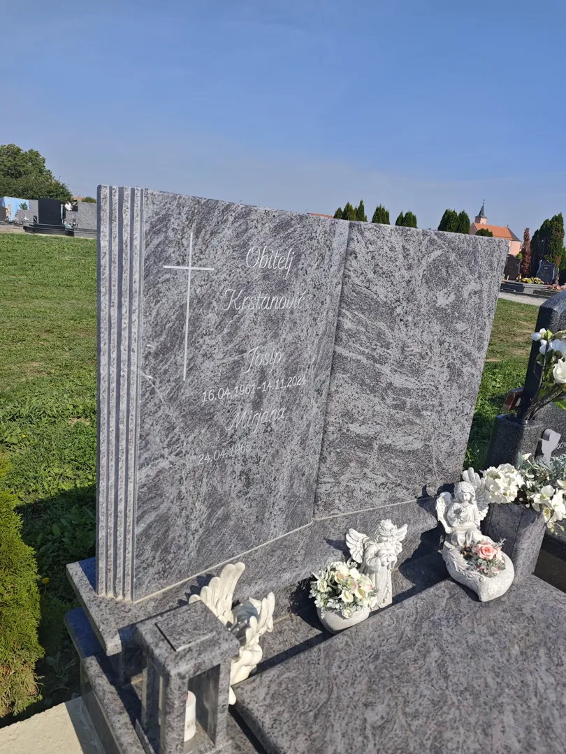 Trebam spomenik na novom groblju u Vukovaru, grobnica je Roza beta, pa želim i spomenik u istom kamenu. Dimenzije širina 90 cm , visina, 60, debljina 8 cm, sa crnim slovima, ali mogu se i prilagoditi to je otprilike