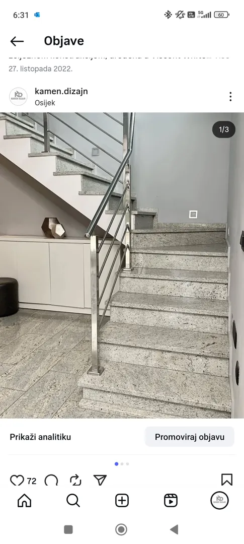 Najprikladniji materijal za izradu vanjskog stubišta je granit, ali je važno da je pravilno obrađen, tj. mora biti neklizajući.