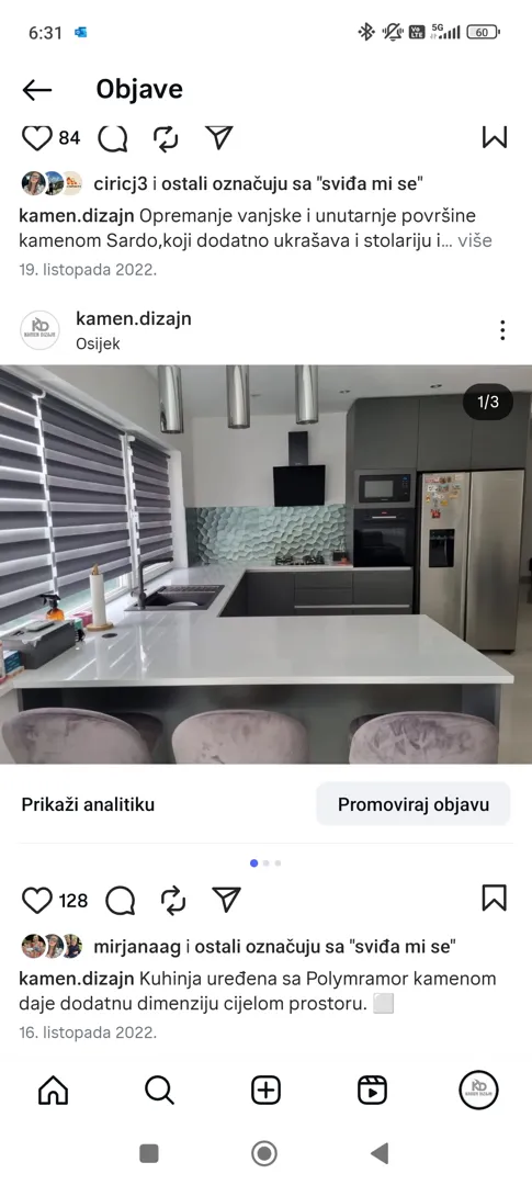 Zamjena postojeće radne ploče u kuhinji sa granitnom . Dužine 7 m sa otvorima za sudoper i stednjak
