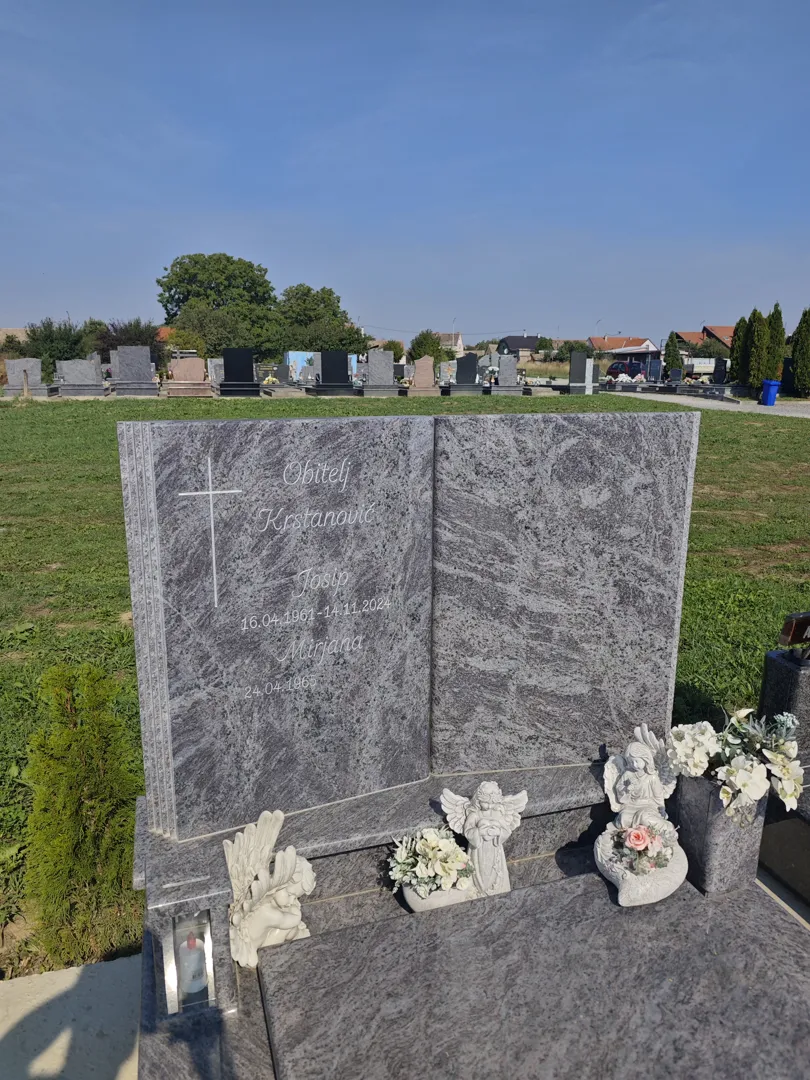 Zanima mespomenik,crne ili sive boje,sa slikama na spomeniku,nesto vrlo jednostavno i skromno ali opet za oko lijepo. Prva opcija nam je mramor ali prihvacamo i druge opcije,u dogovoru.U privitku slika groba kako sada izgleda.