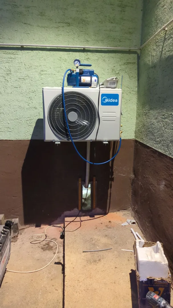 Montaža klima uređaja. Vanjska jedinica se montira na logii, a nutarnja na zid u dnevnom boravku. Duljina cijevi potrebnih je cca cm.
