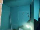 Za gradnju zida u kupaonici radije odaberite cementne ploče. Klasične knauf ploče nisu otporne na vlagu, pa će takav zid ubrzano propadati. Također treba obratiti pažnju na odgovarajući izbor mase za fugiranje – biramo onu koja je otporna na vlagu. Ploče je na kraju potrebno premazati razrijeđenom akrilnom emulzijom, a nakon toga s još dva sloja hidroizolacijskog premaza.