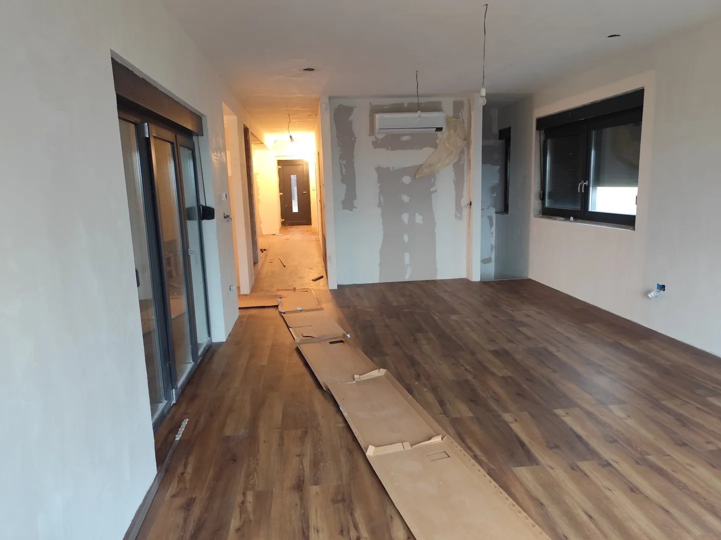 Potrebno je spuštanje cijelog stropa u kuhinji i dnevnom boravku radi poravnanja te dodatno spuštanje dijale stropa u dnevnom radi rasvjete (led rasvjeta okolo-ambijentalno i reflektorice od ispod)