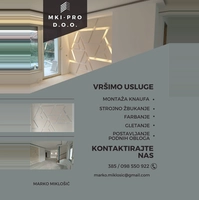 Poštovani, Trebamo majstore za postavljanje knauf zidova za nadograđeni kat te postavljanje ploča za strop i izolaciju od krovišta. Ukoliko ima u ponudi, prednost majstorima s malerskom uslugom.