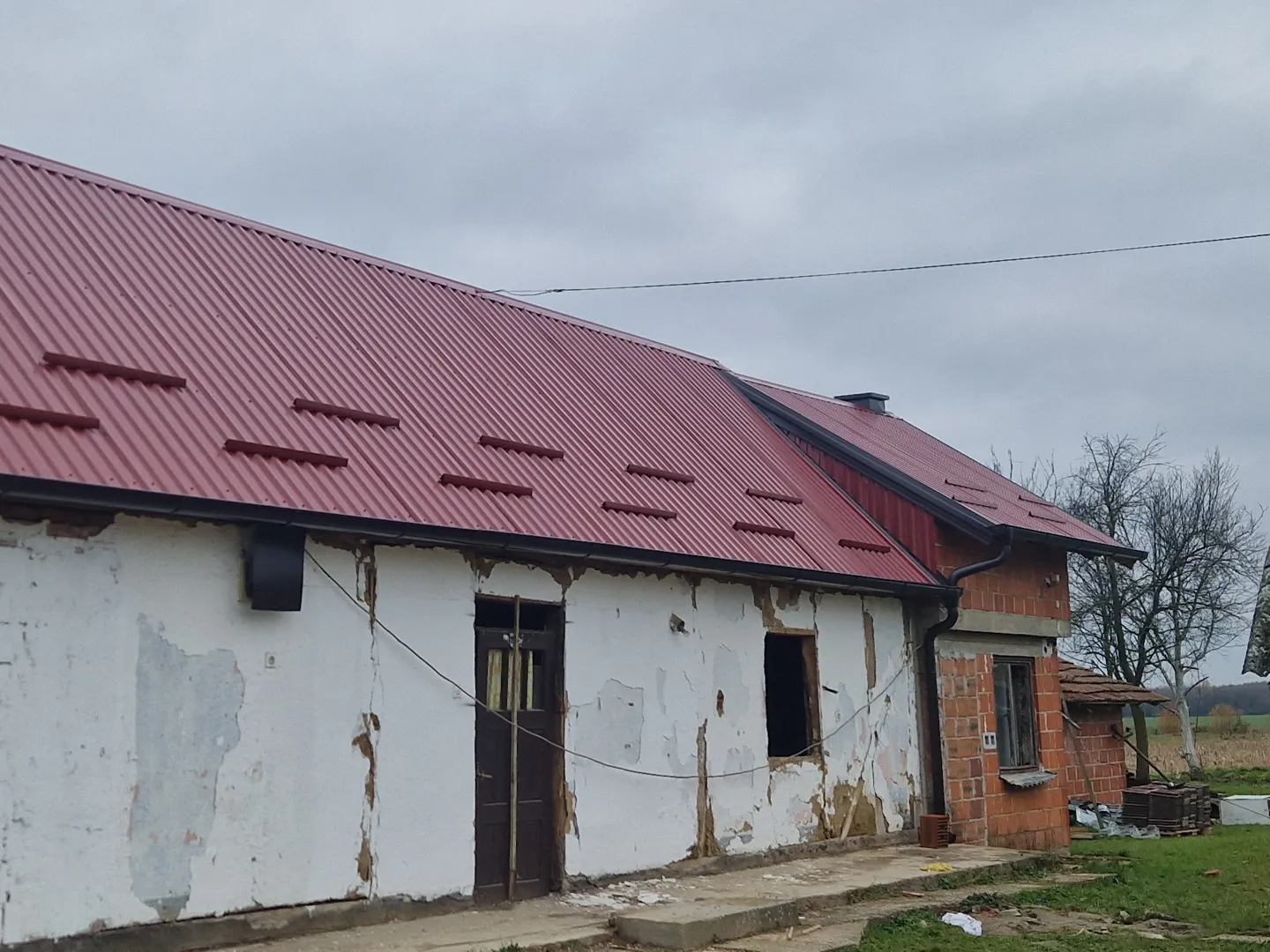 Skidanje starog krova, postava novog najjednistavnijeg na jednu vodu. Krov ide samo na zidani dio 4.5*4.5. Stupovi se ruse.