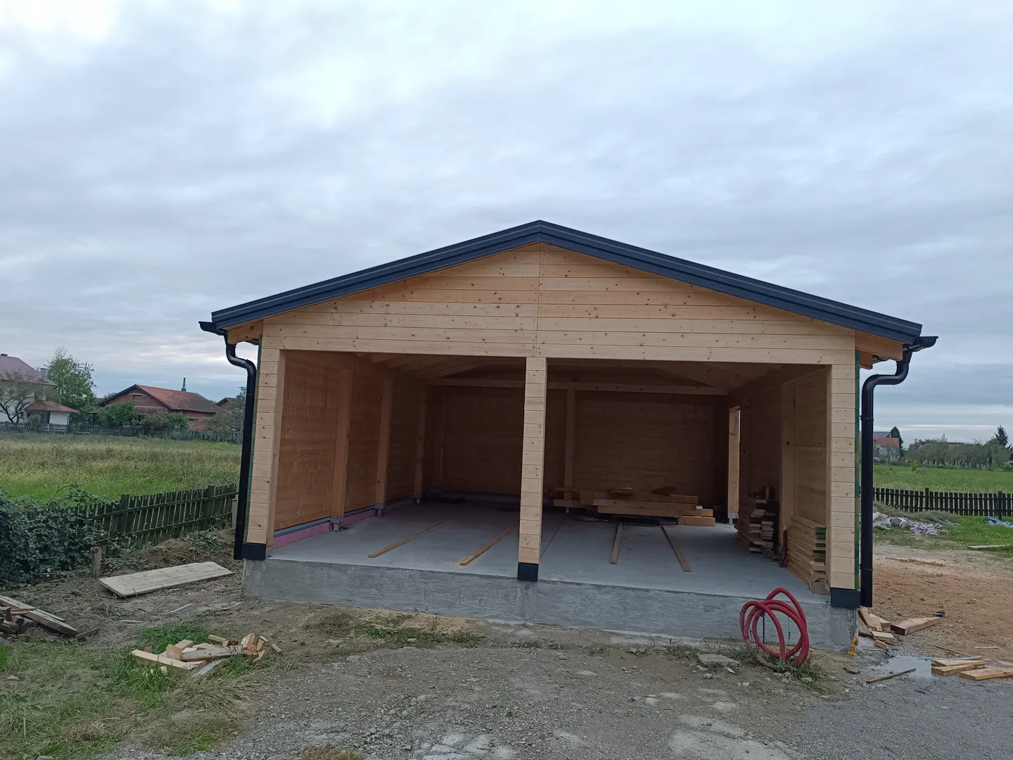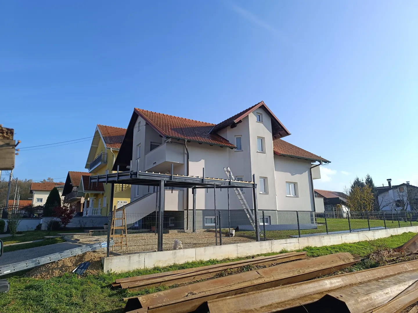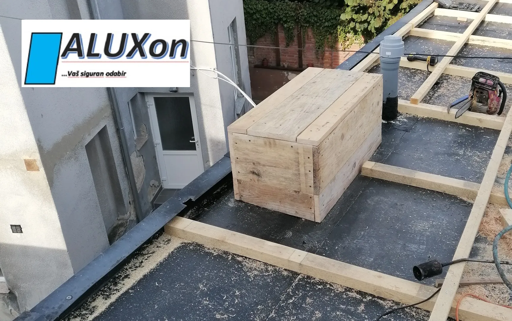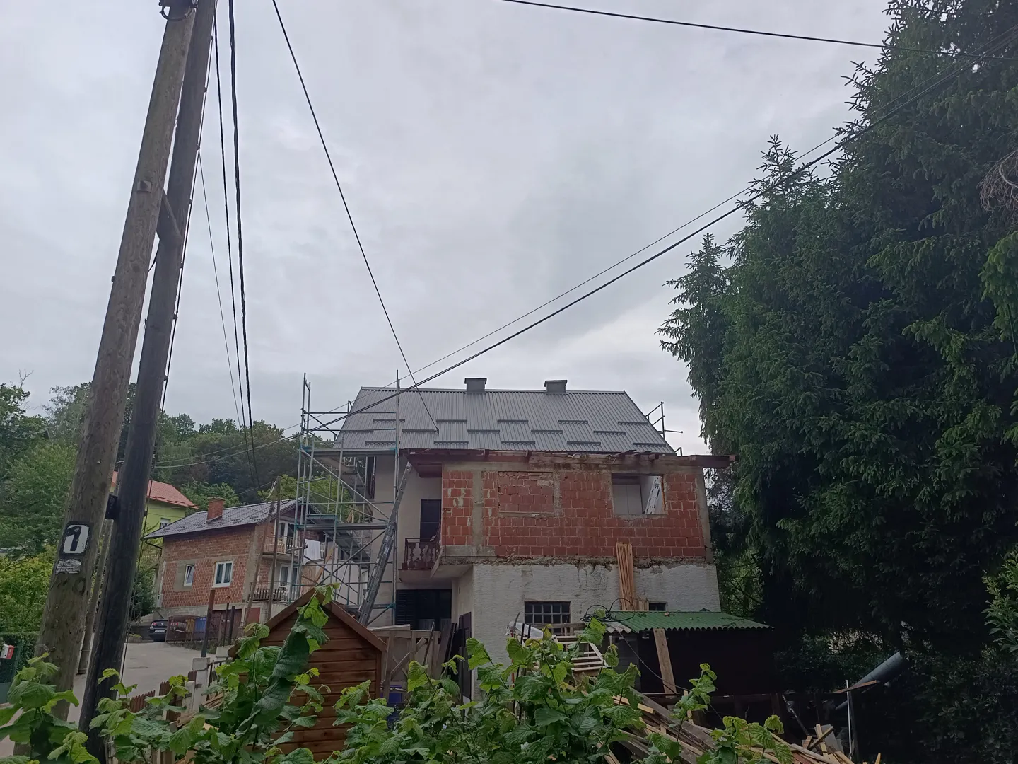 Krov sa svim materijalima je na gradilistu-originalni majstor je otisao-treba sad ekipa da to slozi.