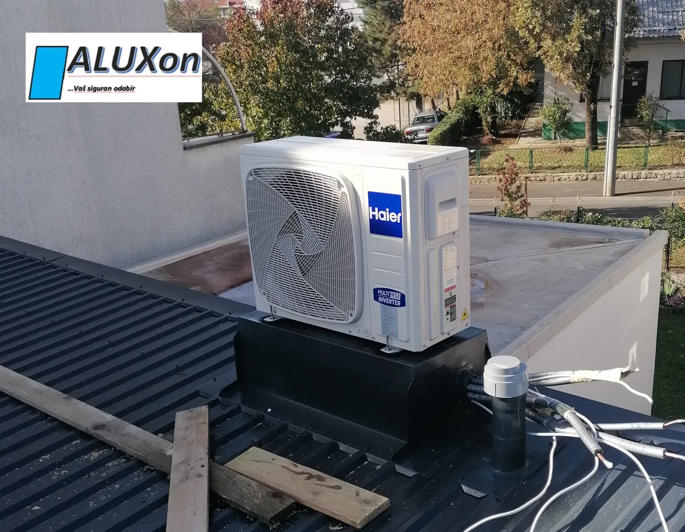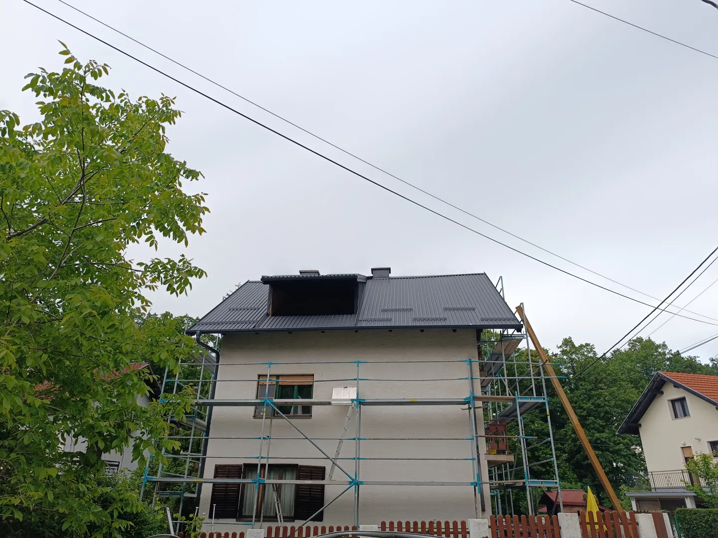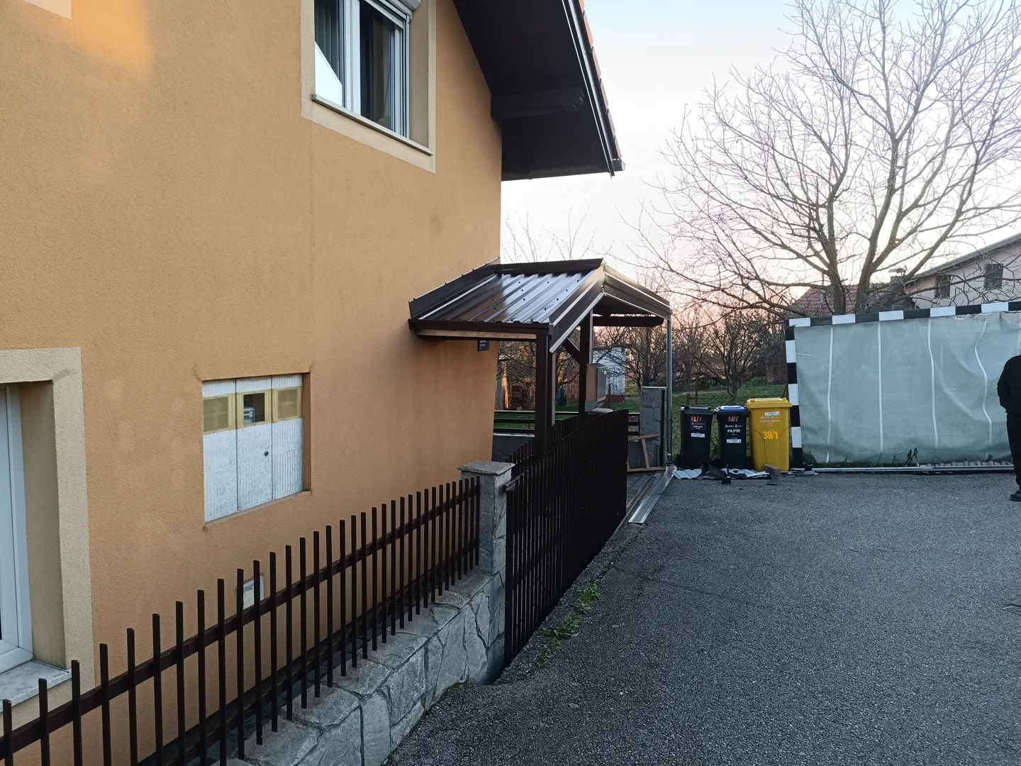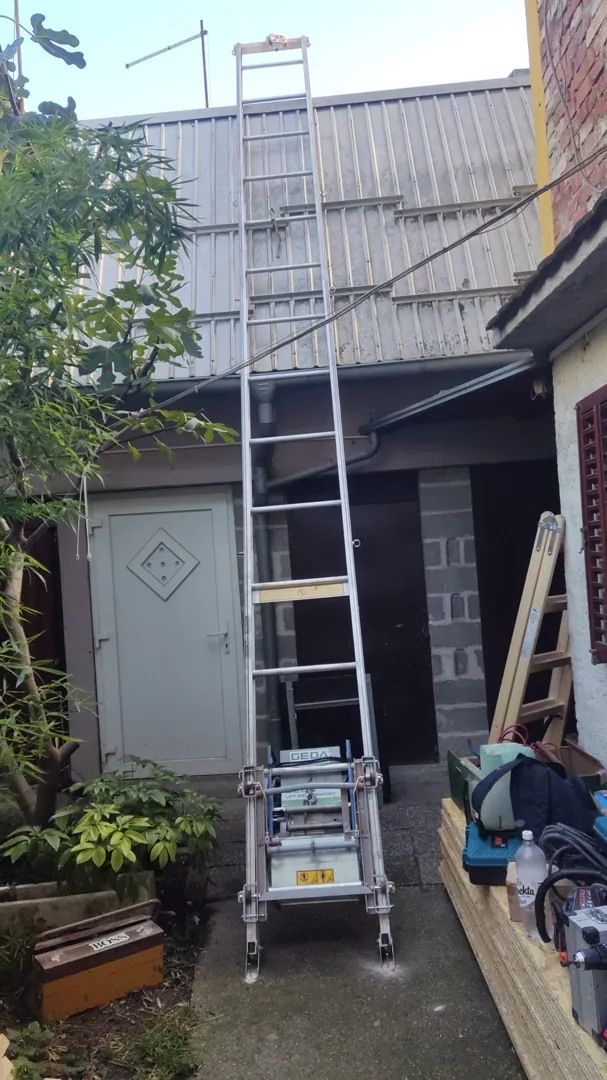 Uslijed nevremena drvo je palo na krov te napravilo štetu na krovu i žljebovima. Zamjenske krovne ploče imamo te bi trebalo samo ih zamijeniti te popraviti žljebove. Trenutno je na krovu najlon.