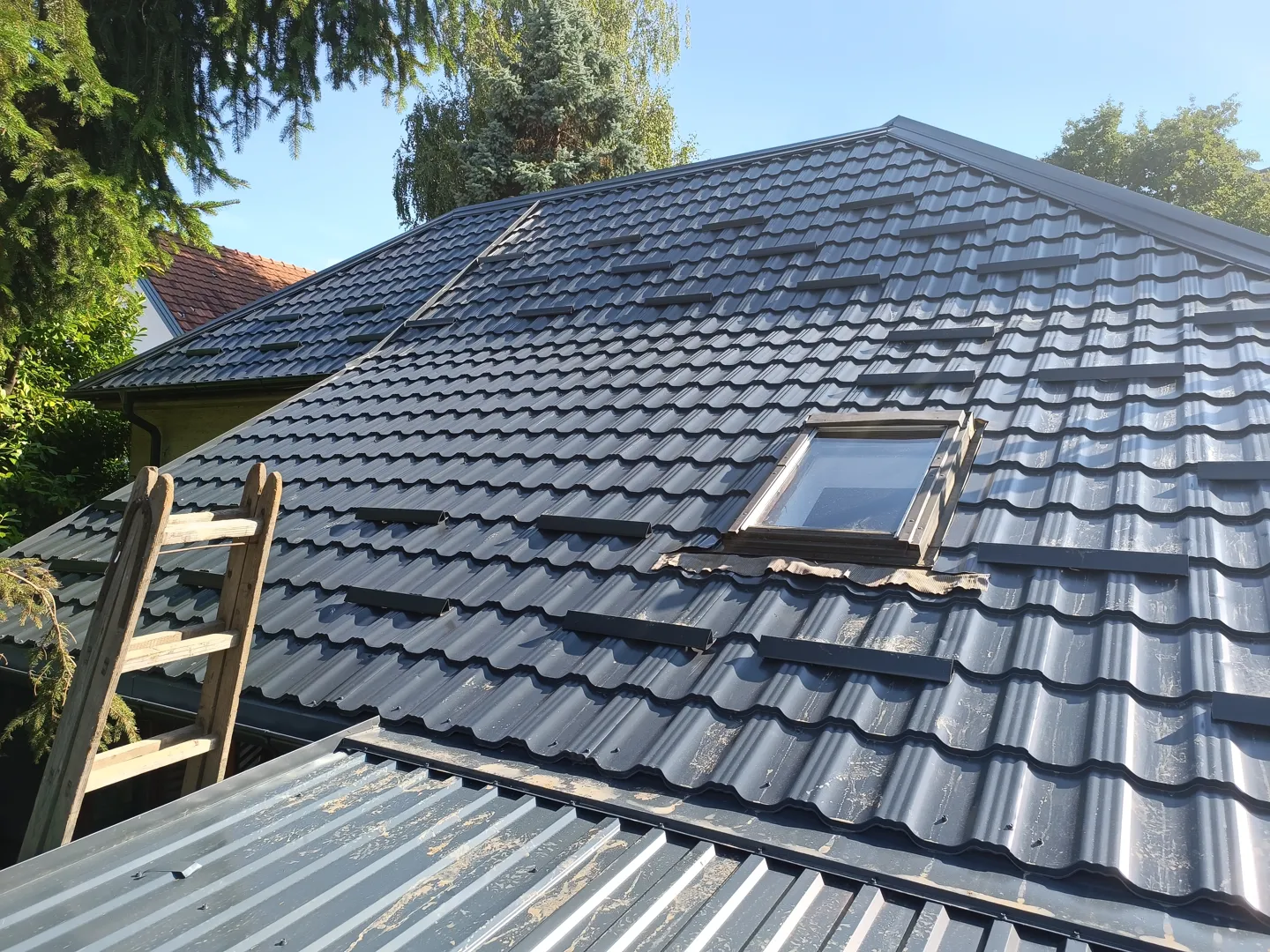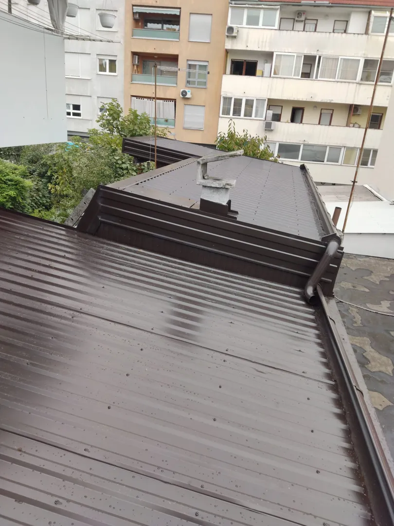 Izrada metalnog krova na 70 m2 s dva dimnjaka.