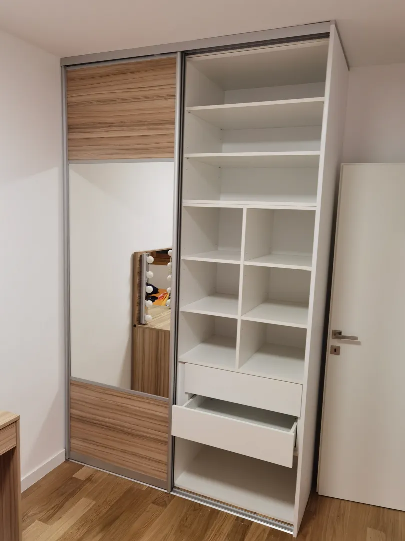 Poštovani! Molim ponude za ugradbeni ormar za dječju sobu, okvirno dimenzije x x 60 cm. Interesira me ugradbeni ormar sa kliznim vratima, bijela boja (mogućnost i dijela sa staklom i sl). Ormar bi trebao imati duo za vješanje (bilo bi dobro da su izvlačne vješalice - jedna za kośulje, jakne.., jedna za hlače), 4 ladice, a ostalo bi bile police. Unaprijed zahvaljujem na ponudama. Lp,
