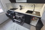 Trebam kuhinju po mjeri u stanu koji će biti dostupan za 20-ak dana te bi se odmah nakon toga trebalo početi s izradom. Od ugradbenih aparata imam stednjak sa odvojenom pločom za kuhanje, perilicu suđa I mikrovalnu pećnicu. Frizider ne zelim ugradbeni jer vec posjedujem jedan s duplim vratima, ali nije uvjet da on uopće mora stajati u kuhinji. Tražim medijapan visokog sjajna najbolje sive boje, ali se gornji elementi mogu "razbiti" nekom drugom bojom ili staklenim elementima. Viseci elementi bi isli skoro do stropa, a obavezno je da kuhinja sadzi manje pretince na izvlacenje (ono sto stolari koriste kada I'm se pojavi mali prostor koji moraju popuniti). Mehanizmi također moraju biti kvalitetniji. Molim ponude. Hvala :)