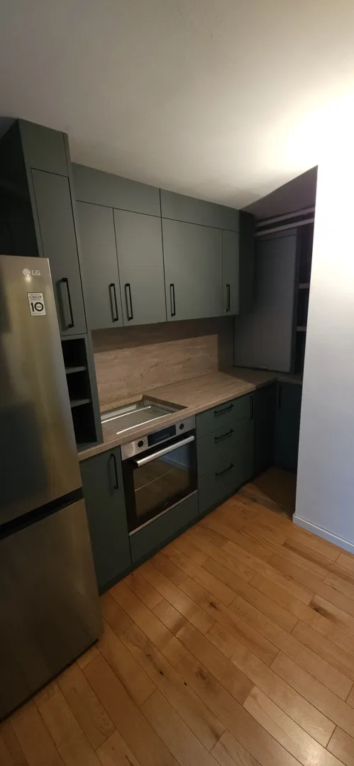 Prostor za kuhinju 3.7m×1.9m.Na dužem zidu je prozor 1.2m.trebam jedan visoki ormar za pećnicu hladnjak nije ugradbeni.