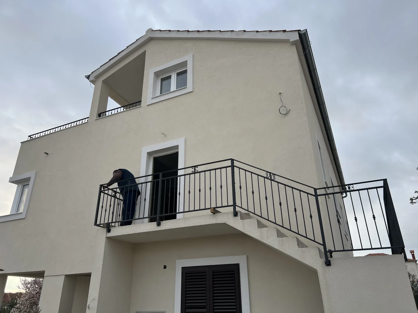 Ograda će biti postavljena (montirana) na već gotovo vanjsko KRUŽNO stubište, koje ide iz bašte ispred stambene obiteljske kuće do balkona(terase) na prvom katu.Stubište ima ukupno 19 gazišta plus povezivanje sa postojećom ogradom na balkonu. Ograda treba prema stubištu biti u obliku zavojnice ( spirala ),jer je takvo stubište.Na vanjskom radijusu gazišta zalivene su po dvije inox matice na kje treba kod ugradnje učvrstit inox vijcima vertikale koje nose kompletnu konstrukciju spiralne ograde. - (ONAJ TKO PROIZVEDE -izradi OGRADU TREBA JE I MONTIRATI)- JEDINO TAKO JEDNA I DRUGA STRANA biti ĆE ZADVOLJNI. OBAVEZNO trebam ponudu za varijantu INOX i varijantu ELOXIRANI ALUMINij. (DVIJE PONUDE ). Adresa je Obala kneza Trpimira 46, Zadar.