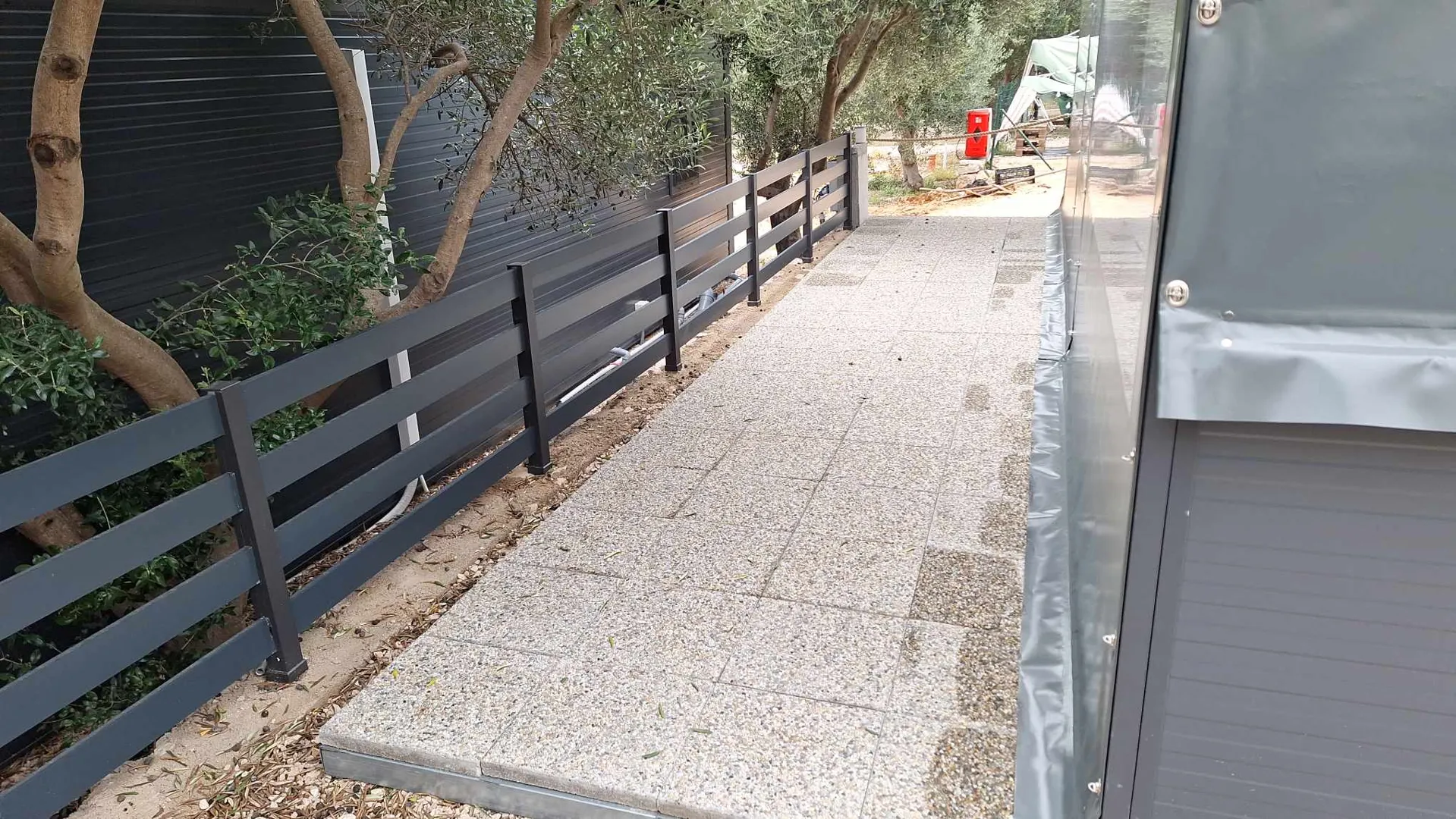 Ograda visine mm, treba biti duzine 9 m (jedan dio 4m, a drugi 5m a oba dijela se spajaju pod 90 stupnjeva), a dio ograde duzine 3 m treba biti visine mm. i spaja se pod 90 stupnjeva s dijelom od 5 m), a drugi dio na ulazna vrata. U nastavku dijela ograde duzine 3 m , idu vrata duzine mm i visine mm. Ograda služi za ograđivanje vanjske terase. dimenzije 4 x5 m.