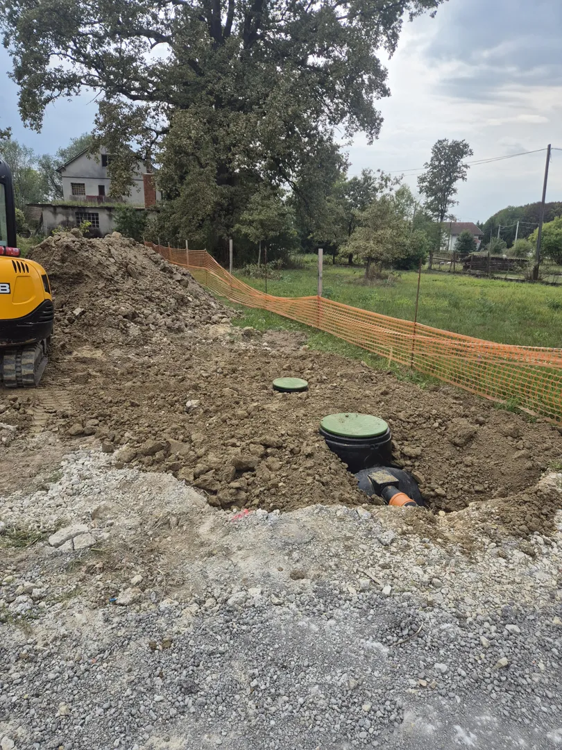 Popločivanje okućnice, skidanje starog betona i stavljanje novog materijala.