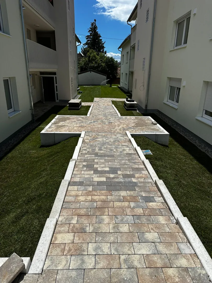 Popločavanje 38 m2 staze betonskim opločnicima.
