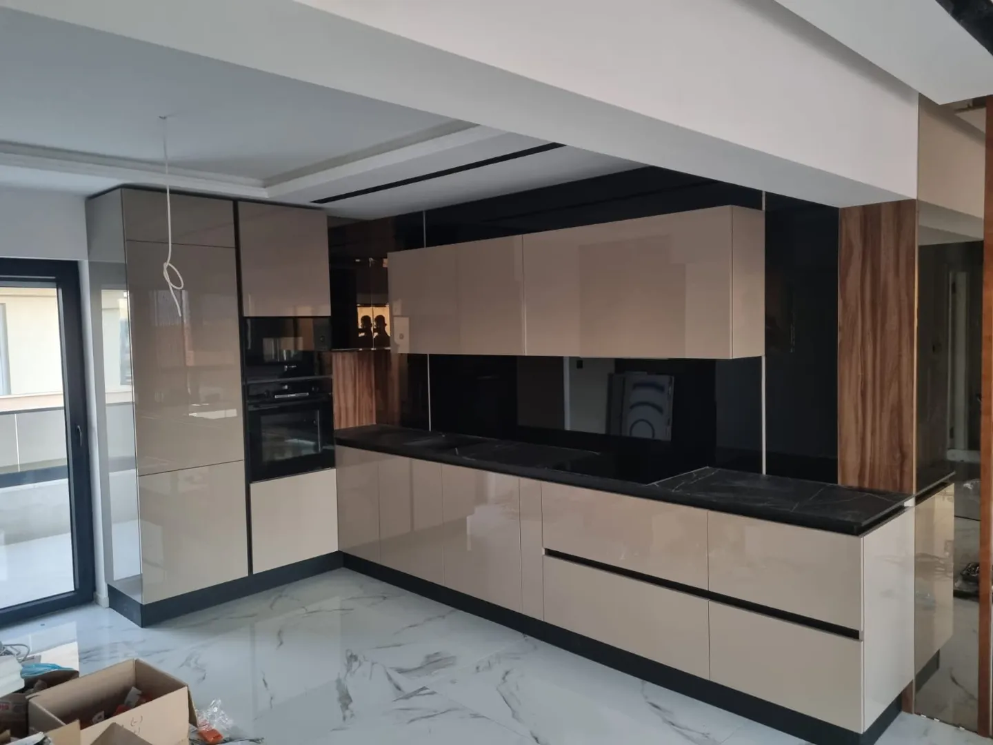 Trebamo kuhinju po mjeri od kvalitetnog materijala (po mogucnosti medijapan i kvalitetna radna ploca). Na slikama je otprilike zamisljeni izgled (donji elementi uglavnom izvlacni, gornji standardni, s time da je dio kuhinje od poda do stropa u elementima. Visina kuhinje je 2,50 otprilike.) Kuhinja je u obliku slova G. Mjere kuhinje sa slike: 1,58 zid lijevo Najduzi zid 3,85 od cega 1,5 m sav u elementima 3. zid 2,5 m i sank 2 m duljine s otprilike 80-90 cm sirine.