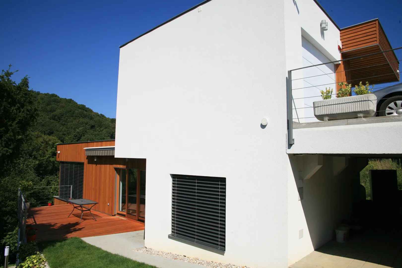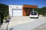 Kuća sa 4 odvojena stana. Ravni krov sa terasom. Poluukopan suteren u kojem bi bila garaža. Parcela: 17m širina uz cestu i 15m dubina parcele prema moru. Bazen.