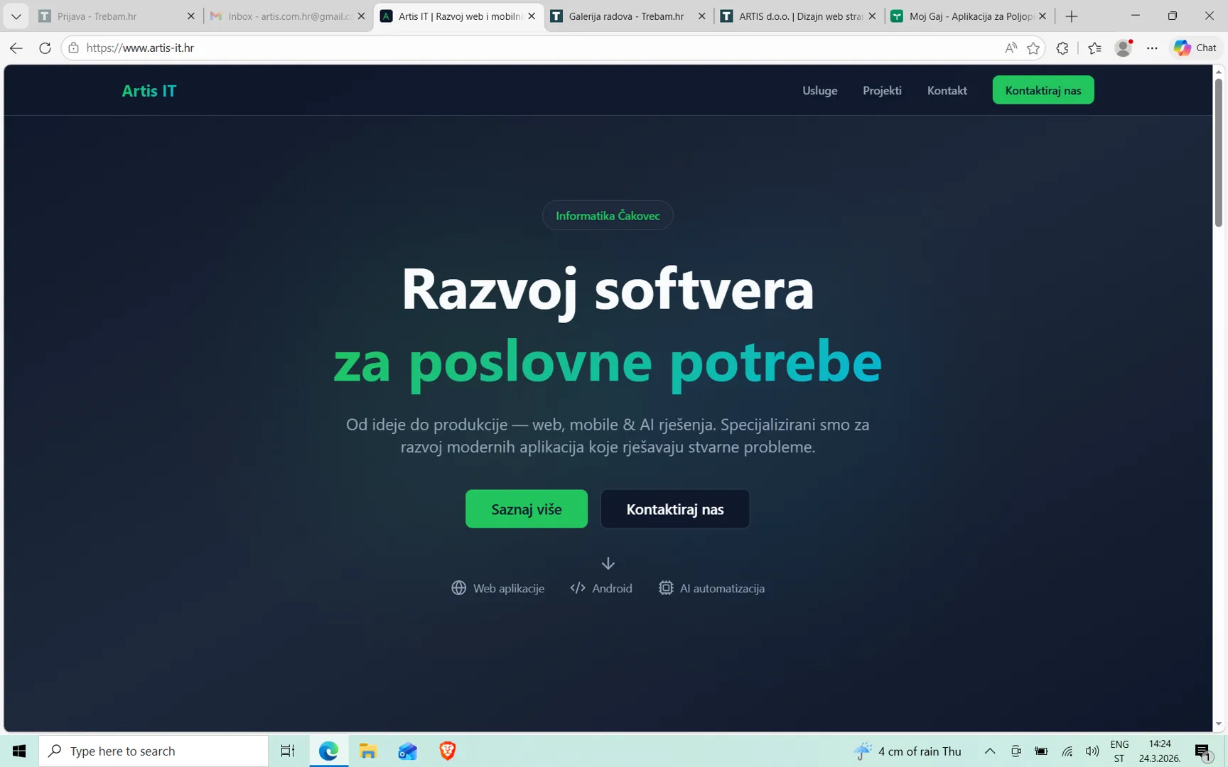 O nama: Razvoj softvera za poslovne potrebe Od ideje do produkcije — web, mobile & AI rješenja. Specijalizirani smo za razvoj modernih aplikacija koje rješavaju stvarne probleme. Web aplikacije Full-stack razvoj (Next.js, React, Node.js). SaaS platforme s pretplatskim modelima. Admin paneli i interna poslovna rješenja.Cloud & DevOps Docker containerizacija. CI/CD pipeline postavljanje. Server administracija i hosting (VPS, cloud). PostgreSQL optimizacija.