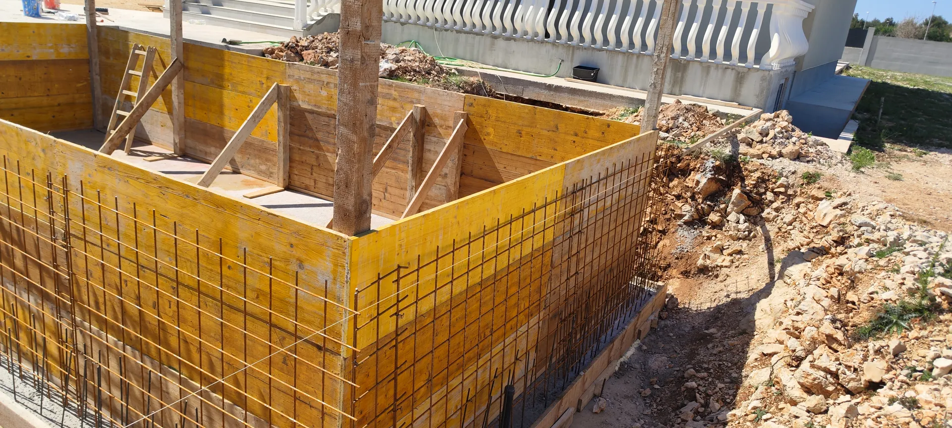 Molim ponude za izgradnju stambene kuće do faze visoki roh-bau (nije potrebno nuditi stolariju). Kuća je armiranobetonske konstrukcije i potrebno ju je izvesti u veliko plošnoj oplati. Na projektu u prilogu prikazani su presjeci zidova sa slojevima. Materijal nabavlja investitor. Za sva pitanja stojimo na raspolaganju.