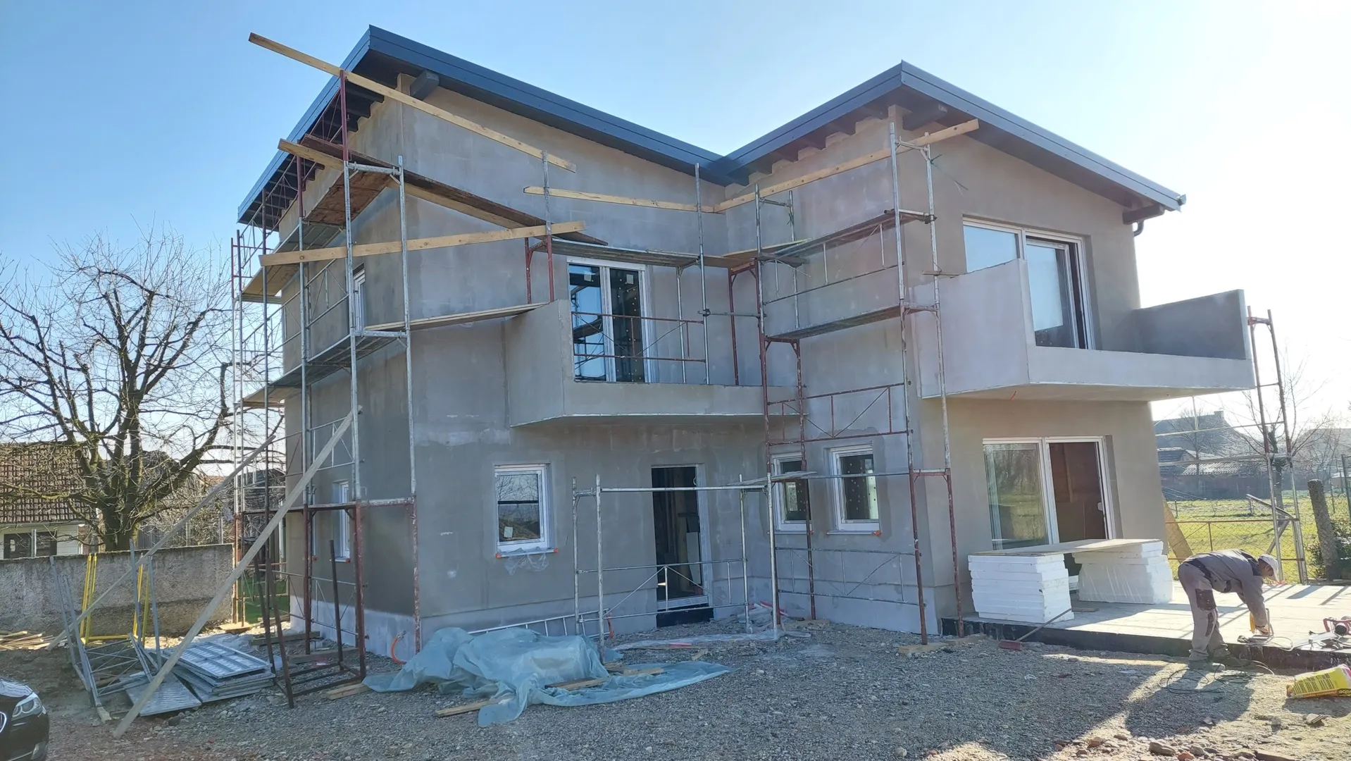 Poštovani, Fasada bi bila debljine 8 cm - grafitni stiropor, sa završnom bijelom bojom -Na objektu je već izvedena fasada (termožbuka) sa sepom kao završnim slojem. Fasada je izvedena prije cca 25 godina, međutim ista bi se zadržala, tj nova fasada bi se izvodila na postojeću. Srdačan pozdrav.