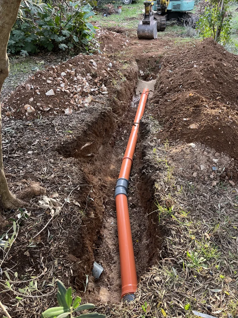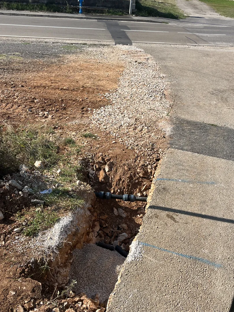 Iskop za cijev od vode 1" u dužini od metara,dubine cca 60cm.Iskop je u ravnoj liniji preko čiste livade