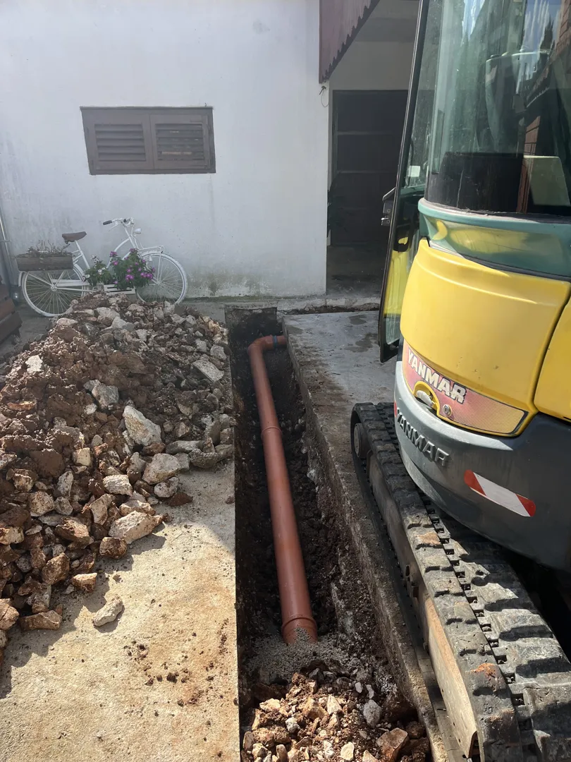 Trebamo iskop za elektroinstalaciju, vodovod, sabirne jame i postavljanje kanalizacije. Iskop temelja, armiranje i izlijevanje betona. Materijal je vaš. Glavni projekt u prilogu