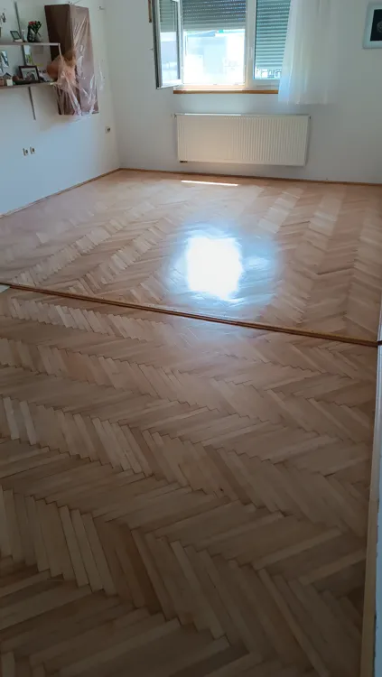 Poštovani, Stan na Ksaveru, Zagreb, m2 sa cca 70-80 m2 parketa. Parket je hrastov, klasik, 55x, starost cca 35 god. Potrebno je parket brusiti, eventualno bajcati, lakirati, mjenjati lajsne. Na pojedinim mjestima bit će potrebno zamijeniti lamele. Ukupna površina na kojoj će biti potrebna zamjena i eventualno preslagivanje je cca 3 m2. LP