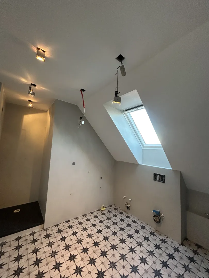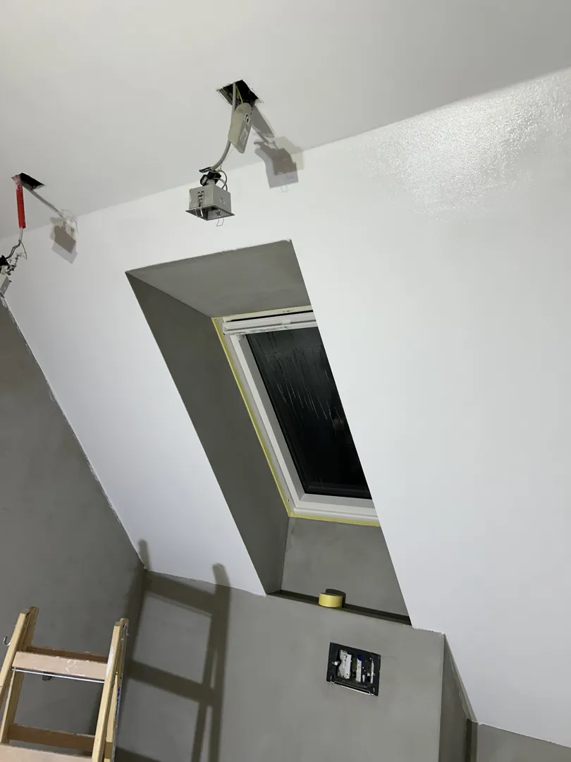 Postava izolacije debljine 10 cm na kosi strop i postava gips-kartonskih ploča na strop.