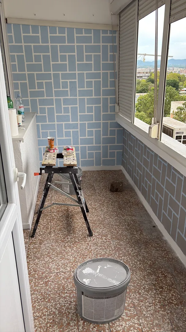 Potrebno je gletanje i bojanje zidova u sobi površine 14 m², visine 2,75 m. Ukupna površina za obradu iznosi otprilike 40 m² (zidovi i strop, uz uračunate otvore poput prozora i balkonskih vrata). Zidovi su očišćeni od tapeta i boje, a podloge su u kombinaciji zidanih i betonskih dijelova – uz tragove stare glet mase, žbuke, uljane boje i ljepila (vidljivo na fotografijama). Strop nije potrebno gletati, samo obojiti. Boju donosim ja – sve ostalo (impregnacija, glet masa i slično) treba biti uključeno u ponudu za rad.