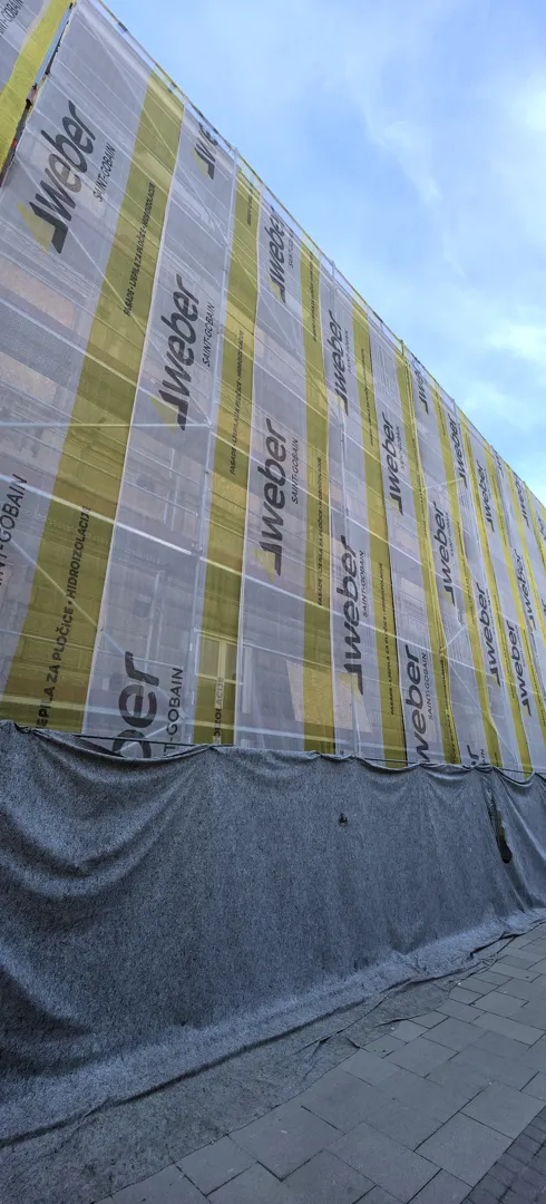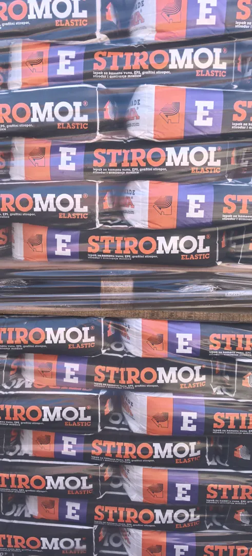 Grafitni stiropor debljine 5 cm, JUB boja cigle, s kutnicima na čoškovima zgrade.