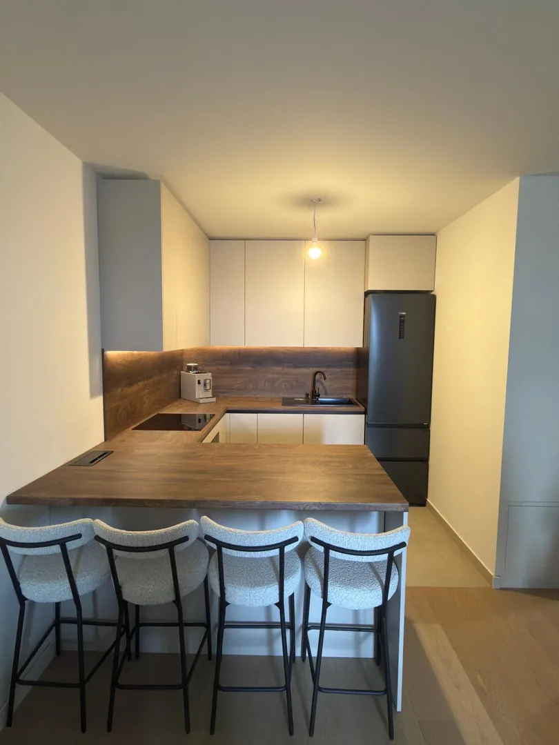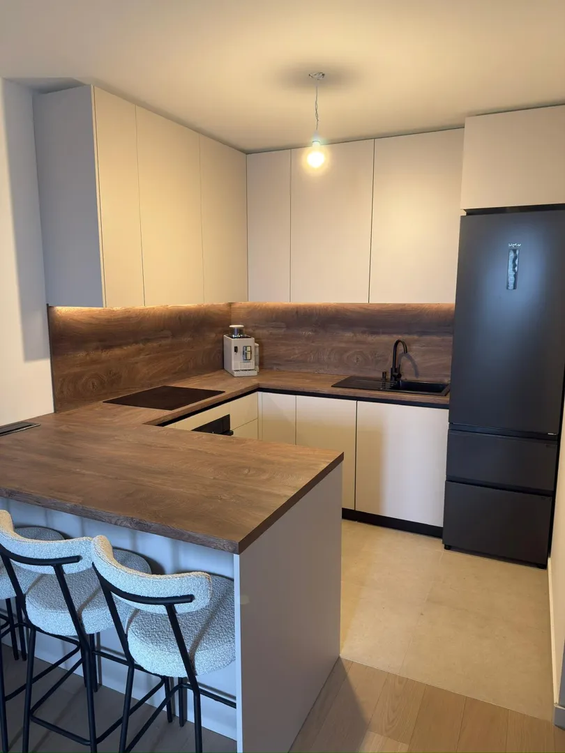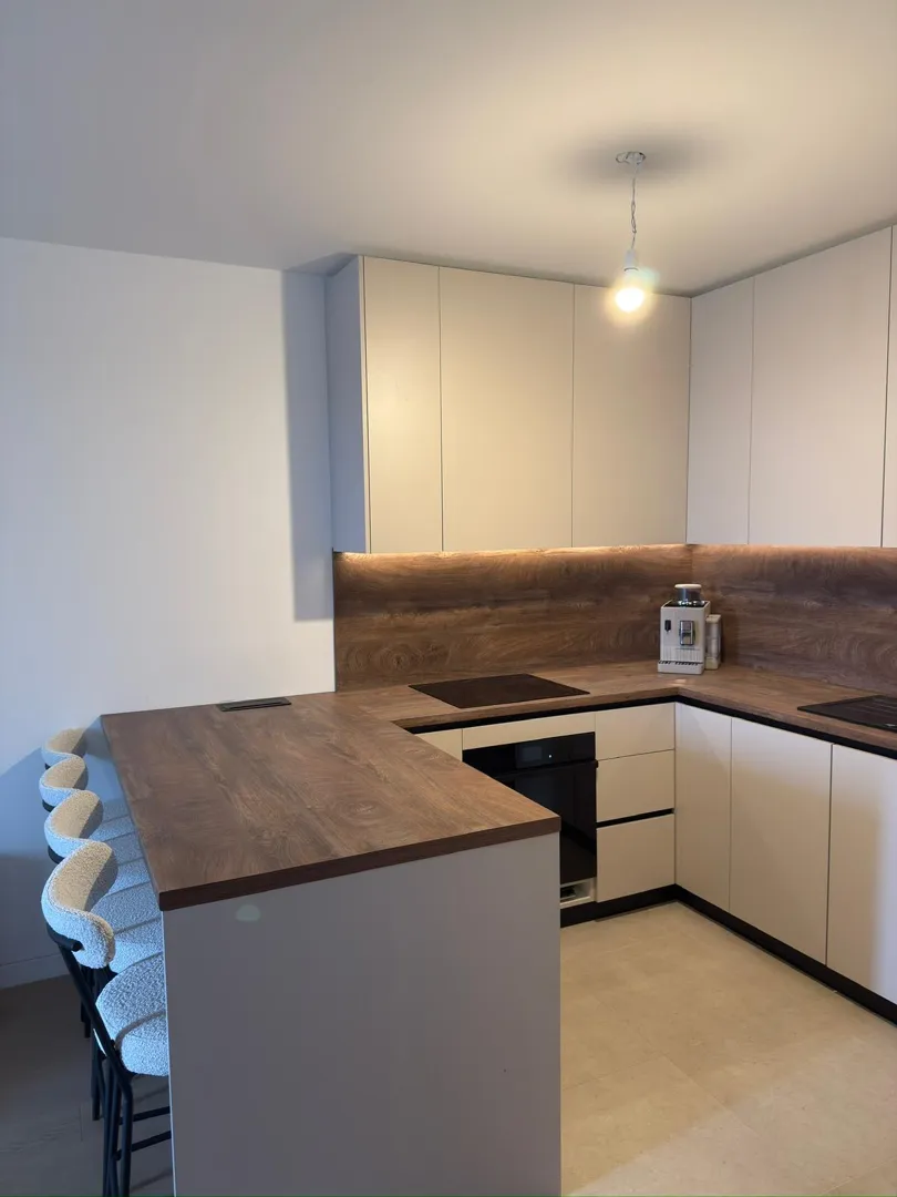 Poštovani, trebam kuhinju L tlocrtnog oblika sa ugrađenom pećnicom, pločom za kuhanje i sudoperom, sa visećim elementima u jednom redu i ugradbenim ormarom. U prilogu je nacrt. Molim vašu ponudu . Lijep pozdrav.