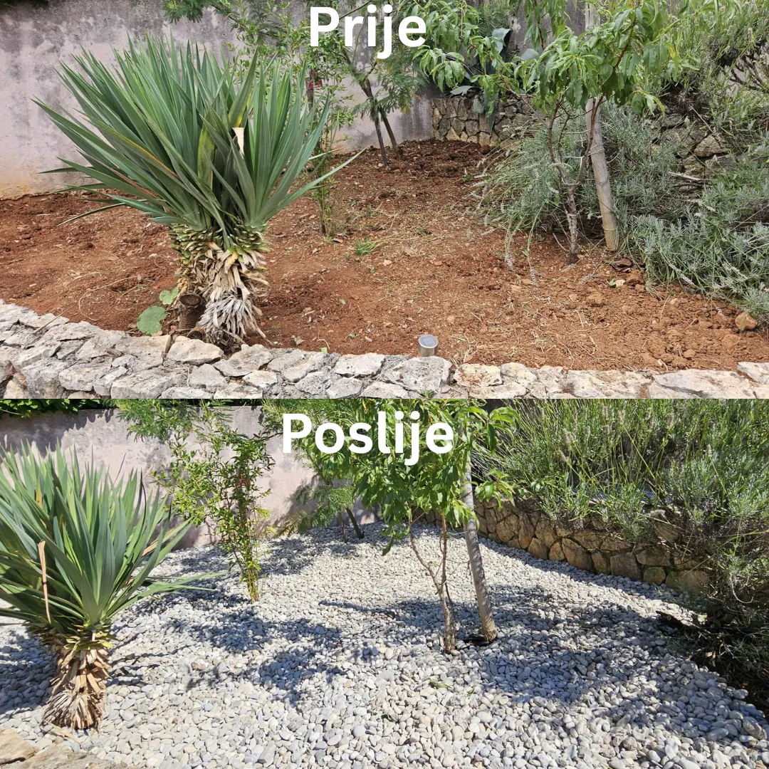 Imamo veliku okucnicu . Oko kuce je nasut šljunak tucanik,bijeli.Kroz njega proraste uvijek korov i trava.Pokusali smo kositi sa trimerom ali stabljike korova su visoke i debele tako da nismo uspleli to srediti.Culi smo da se to može tretirati hemikalijom ?Molim vas ako mozete da nam pošaljete ponudu koliko bi bilo uredenje. Unaprijed hvala.