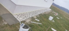 Na postojeći dotrajali pokrov od bitumenske šindre potrebno je izvesti novi ventilirajući sloj, ugraditi nosivu podlogu za lim(daska ili tanji materijal istih nosivih svojstava., izvesti klasično pokrivanje ravnim limom sa stojećim falcom te izvedba svih detalja ventilacije krova i spojeva. Krovna limarija i opšavi dimnjaka su u cijeosti izvedeni od bakrenog lima. Opcija - drugi sa bakrom kompatibilni lim. Površina cca m2