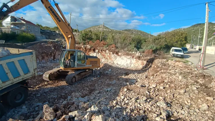 Iskop zemlje odnosno sloja u debljini od 10 cm na travnatom dijelu dvorišta (oko m2) koje se podiglo nakon nekoliko godina s obzirom na vrstu terena i kiše. Sad kad padaju velike kiše, slijeva se preko zidića i ograde zemlja na cestu. Ista je situacija s ravnim dijelom iza kuće i velikog podzida u gornjem dijelu zemljišta - zemlja se s većim kišama skijeva u dvorište.
