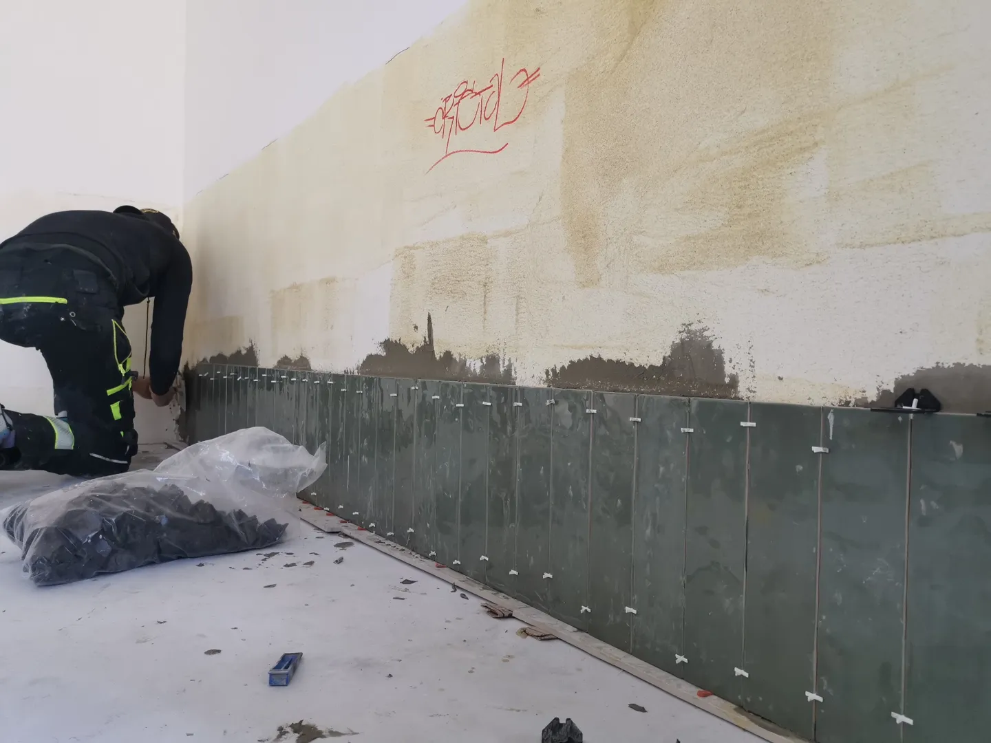 Potrebno je postaviti podne i zidne ploćice u kupaoni i kuhinji te dekor kamen u dnevnom boravku i hodniku podnih ploćica cca 14 m2, zidnih cca 30 m2 te dekor kamena cca 11 m2. postojeće pločice vlasnik sam uklanja, potrebno je samo postaviti nove.