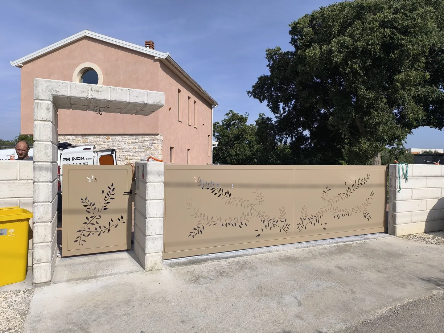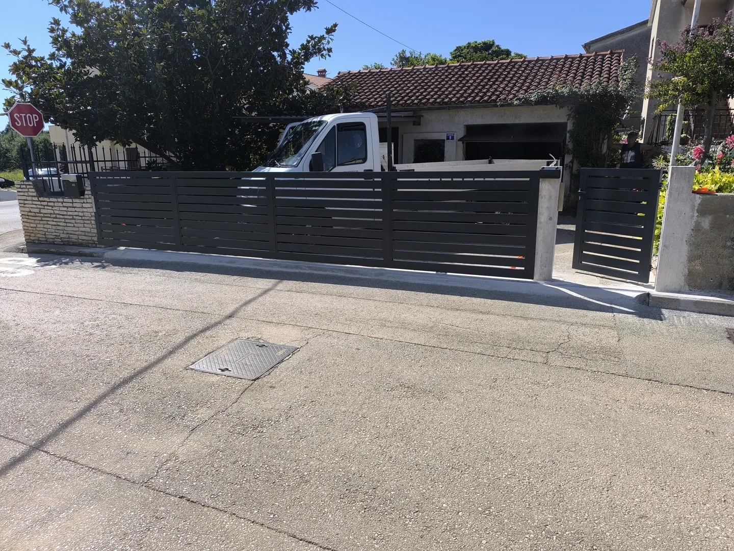 Ograda dužine 4m , visine 2 m. Od aluminijskih panela u antracit boji.