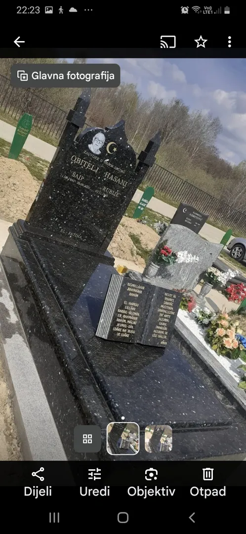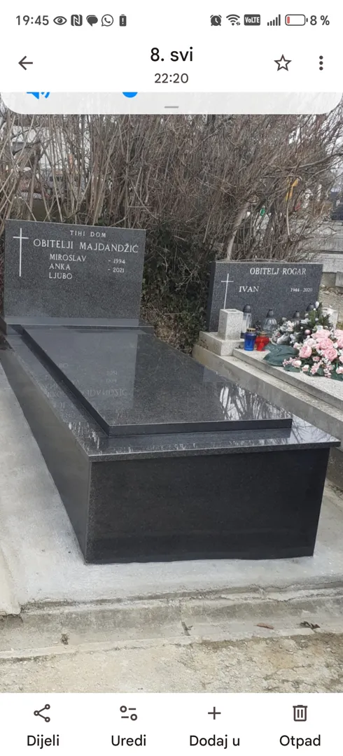Jednostruki grob sa betinskim okvirom unutra je zemlja 3 grobna mjesta na Markovom polju.Polje 57 broj razred 1.Trebala bi ponudu za plocu i spomenik od mramora.I okolo groba da je uređena staza da je na betonu isto mramorni okvir.