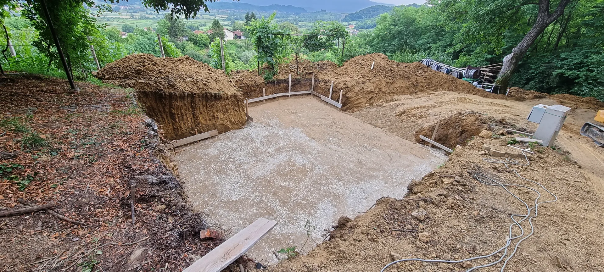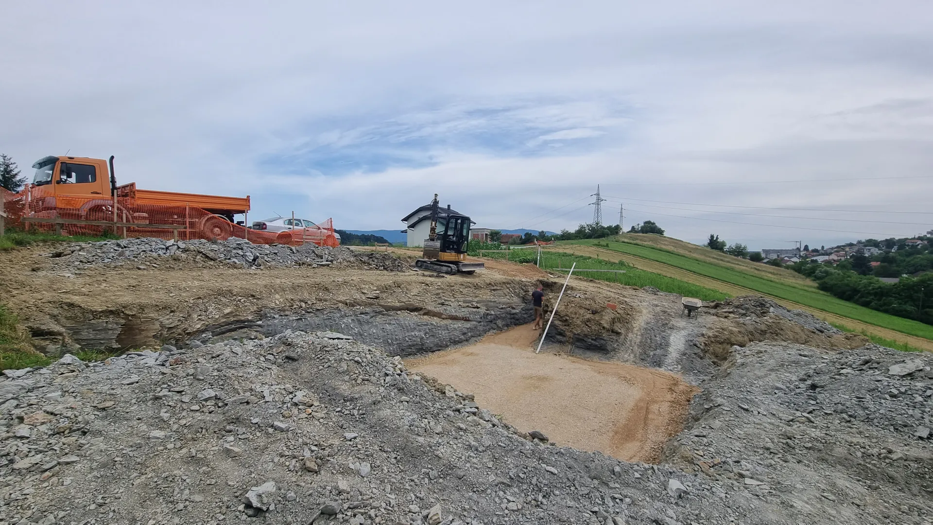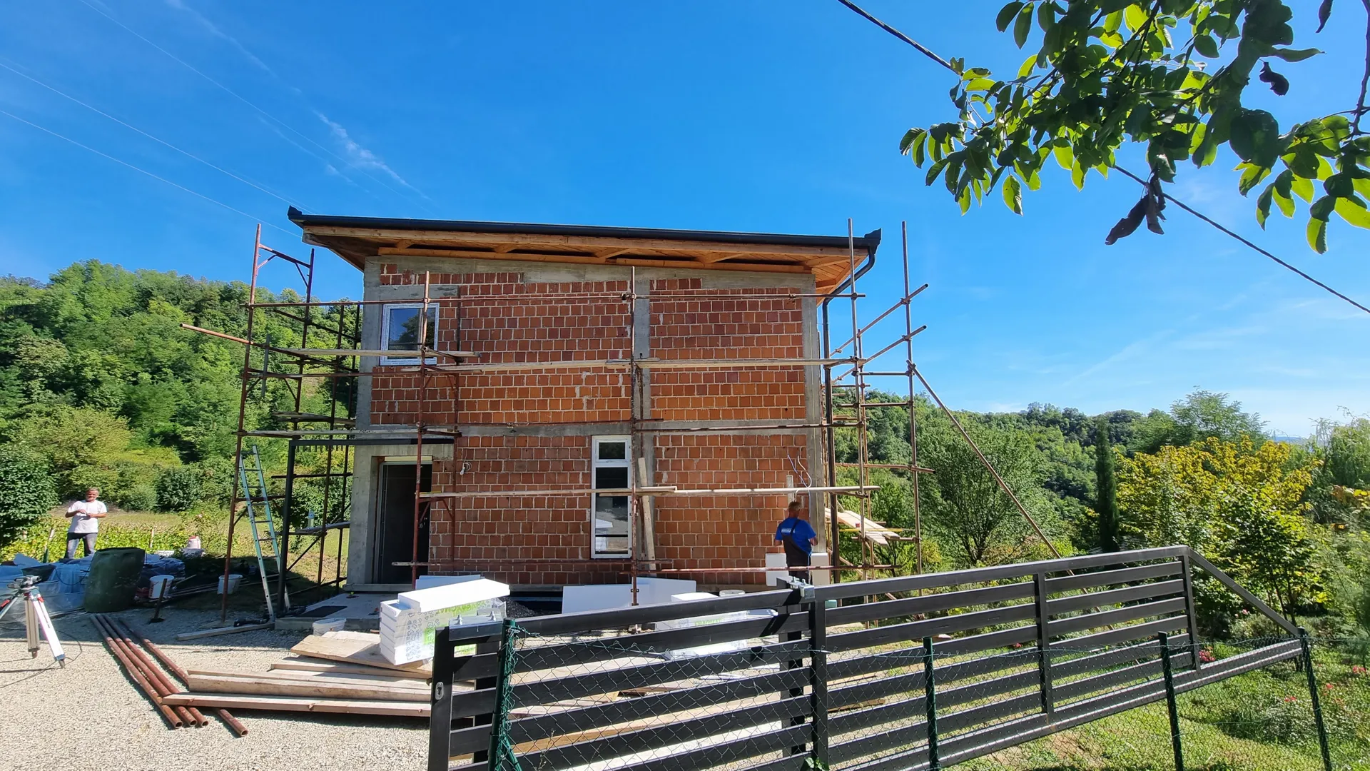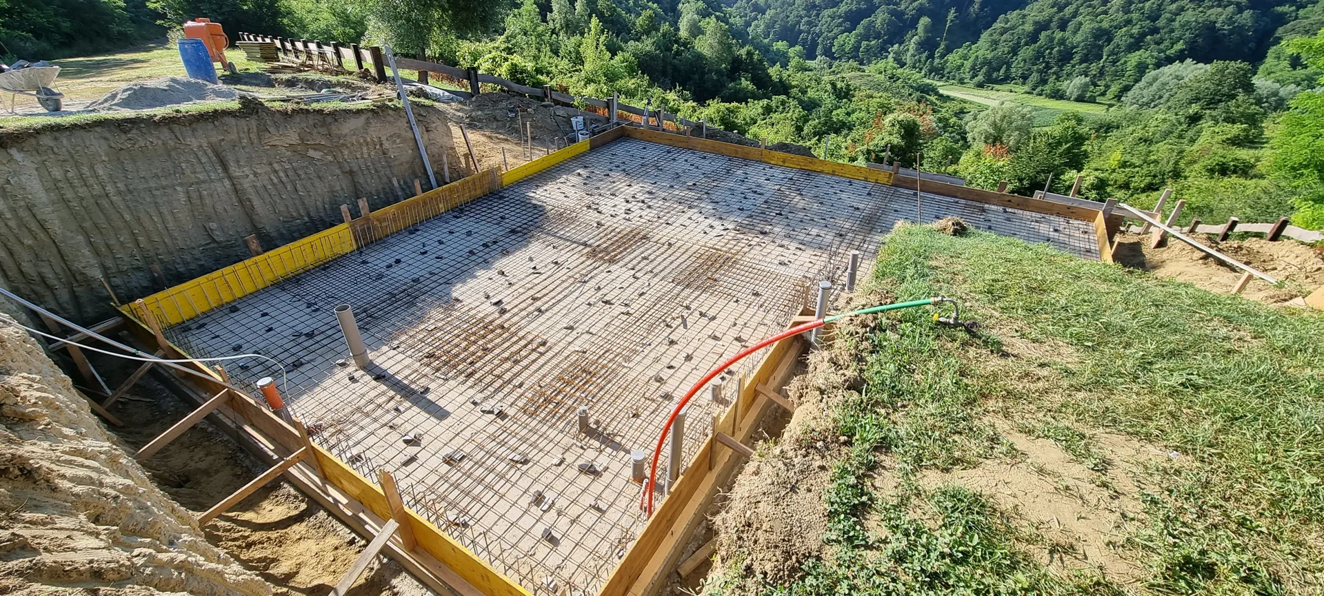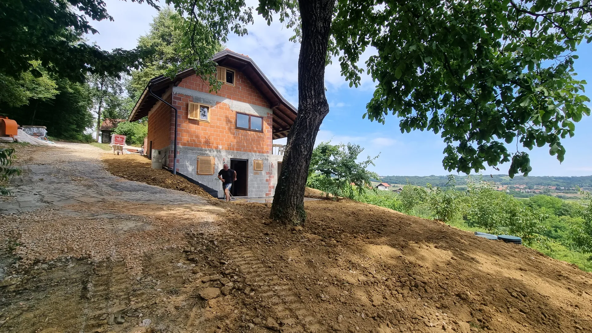Zamjenska prizemna poluugrađena stambena građevina sa jednim stanom, tlocrtne površine ,90 m2 u Zagrebu, na adresi Vodička ulica 5. Ishođena pravomoćna građevinska dozvola. Postojeća građevina je uklonjena do razine mršave podne ploče. Na gradilištu je aktivni gradilišni elektro ormar i vodomjerno okno s vodom. Plinski priključak je umrtvljen. Teren je ravan. Konstrukcija je od nosivih zidova od opečnog bloka sa AB vertikalnim i horizontalnim serklažima, a krovna ploča ravna armirano-betonska debljine 18 cm. Krovni nadozid (atika) je visine 60 cm. Temelji su trakasti armirano-betonski. Predviđen je ravni krov. Molim ponudu za izvedbu konstrukcije bez slojeva ravnog krova, uključivo polaganje temlejne kanalizacije, vode i instalacije zaštite od munje.