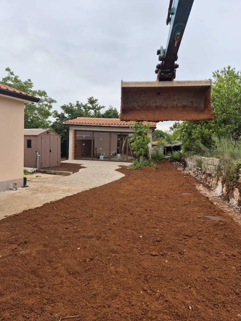 Ravnanje terena u razinu ceste, trenutno je u funkciji kao prilaz kuci. Iz NULE do otprilike 1.5m visine. Jedna strana je betonski zid visone 50 cm i pristupni put koji se trebaju osigurati od rusenja. Za vise detalja nazvati